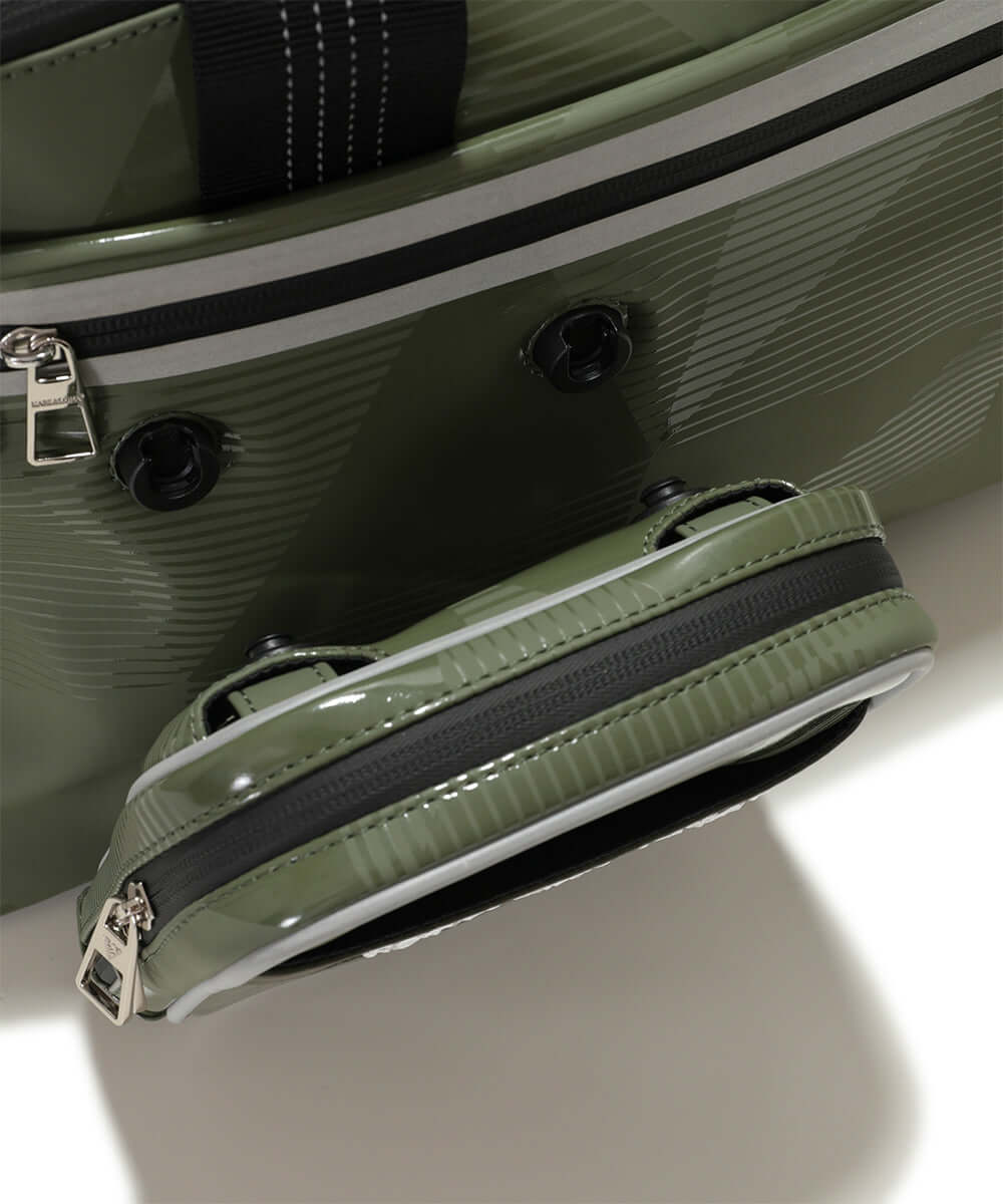 ・Removable pouch pocket on the side. The magnetic hook [FIDLOCK®] allows for one-touch attachment and detachment. It can also be used as a clutch by attaching the strap that comes inside.