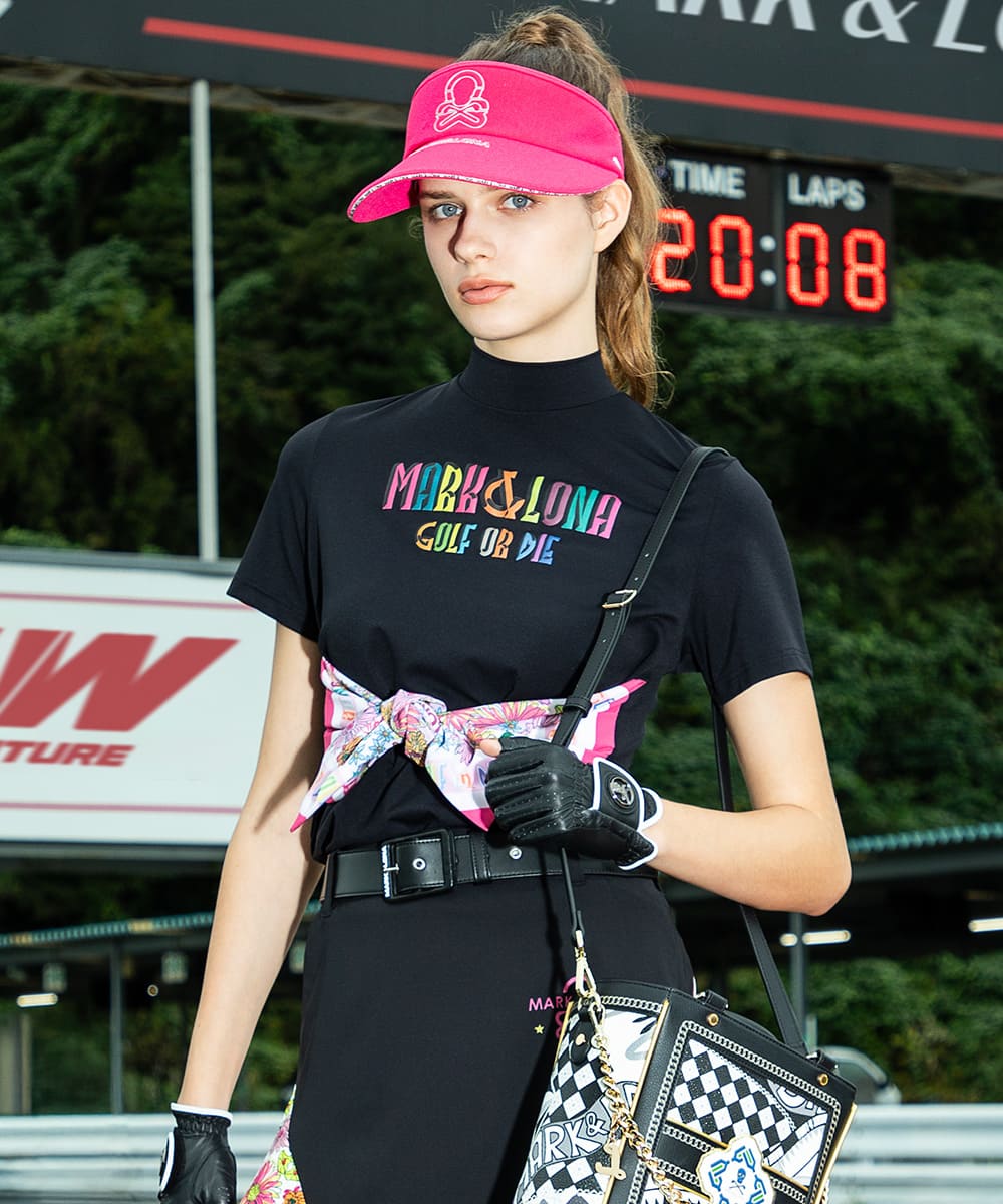 Introduce a polo shirt featuring a collage of graphic logo motifs and a soft cotton-blend pile texture—delivering comfort with a bold seasonal statement. Also new this season, a mock-neck T-shirt with playful scarf details and pop floral graphics, adding a unique twist to your spring golf style.
