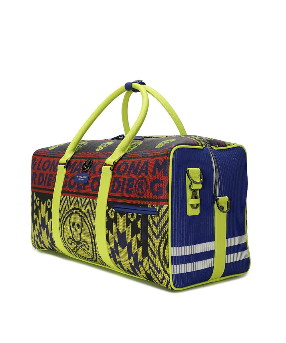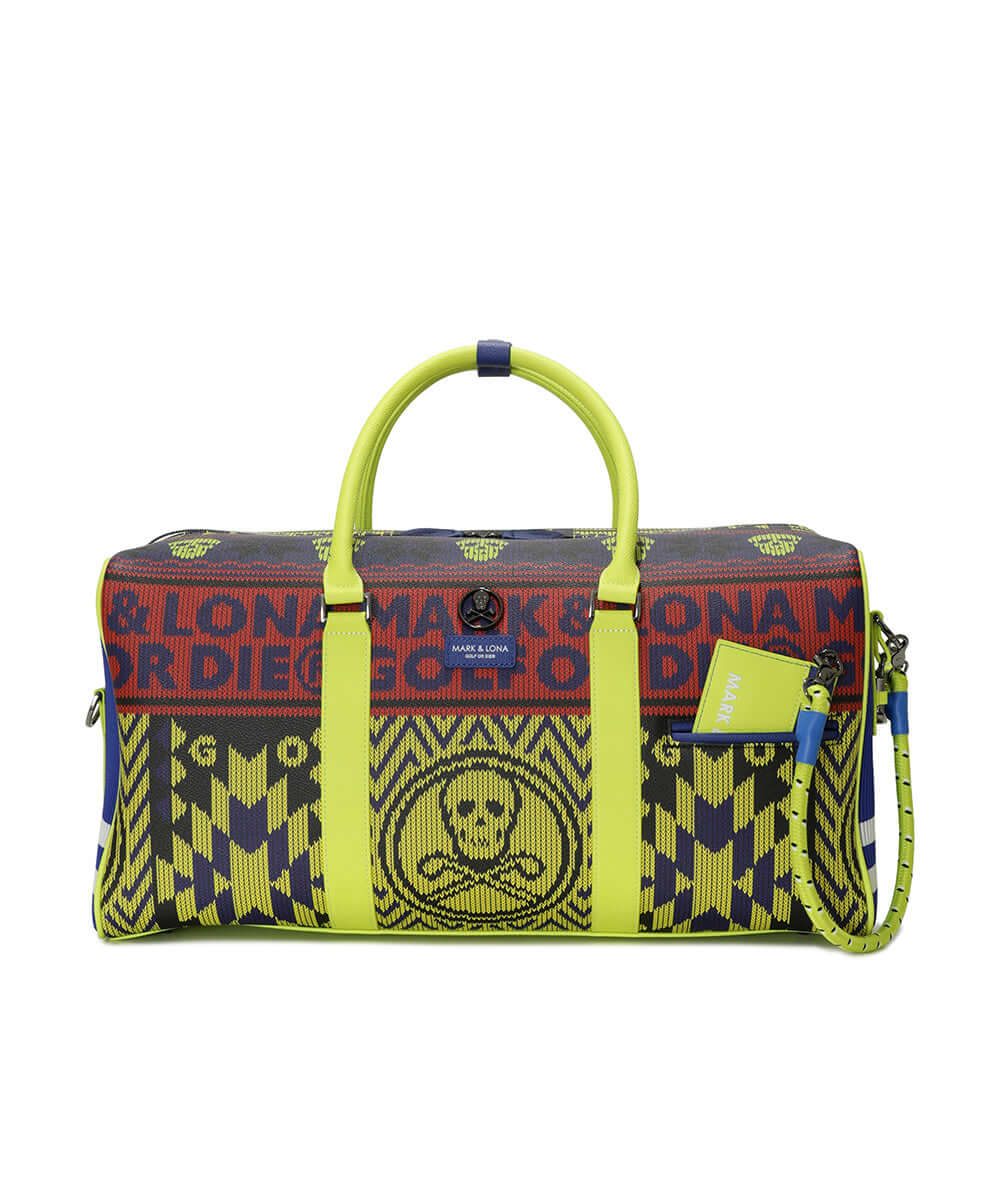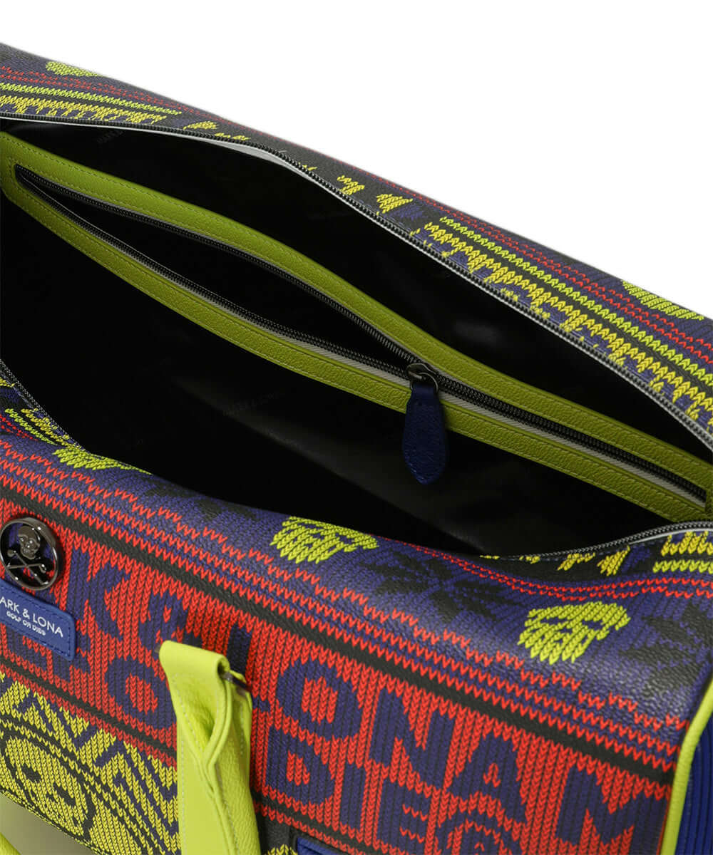 A Boston bag printed with knit fabric in folklore patterns such as Fair Isle and Ortega. A hybrid series that combines synthetic leather on the main body and knit on the sides.