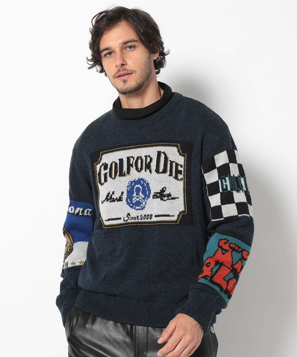 An eye-catching windproof lining long sleeve knit with various graphic logo patterns. Regular fit silhouette with a little room around the body and arms. Using spongy wool yarn, this season's various graphic logos are expressed in jacquard. The lining is made of a functional material that is coated with a special polymer and has windproof, water repellent, and stretch properties. Even in the cold winter, it prevents cold wind from passing through and supports a comfortable round.