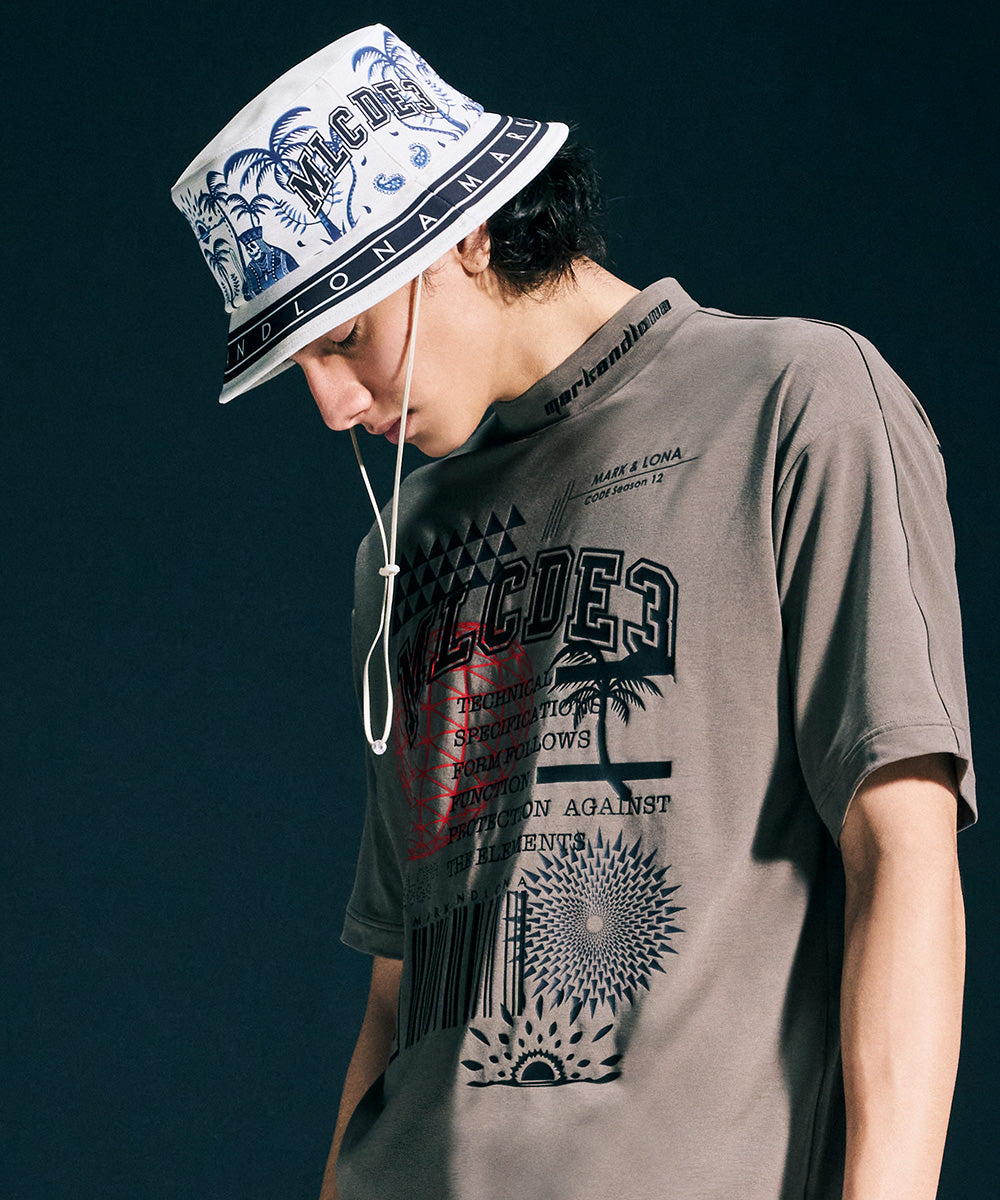 The CDE series 3rd season collection features designs that blend naturally into everyday life and functionality suited to active scenes. A summery graphic print bucket hat with a palm tree motif. A clean shape with a suppressed brim. The main body is made of polyester material that is moisture-wicking, quick-drying, UV-resistant, and cool to the touch. Comes with a removable hemp-string-style hat strap with metal fittings. The lining is made of polyester mesh material with antibacterial and moisture-wicking properties. The excellent antibacterial effect of silver ions inhibits the growth of various bacteria, and the capillary action of the Y-shaped cross section quickly absorbs and dries sweat. The bottle leather is made of pile material, which quickly absorbs sweat.