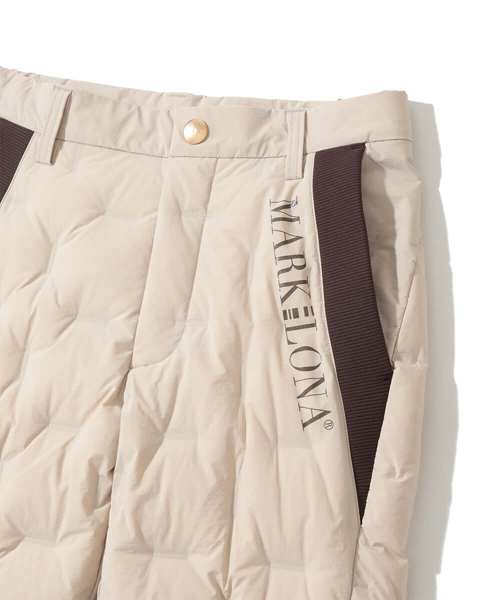 Cold-weather pants that allow you to enjoy playing without worrying about the cold, even in the middle of winter. It has increased stretch and is more comfortable to wear. A slim fit silhouette that takes advantage of the material's high stretch properties. Down pants tend to bulk up, but we have adopted a pattern design that takes advantage of its stretchy properties and allows you to wear it smartly. Made of highly durable, high-stretch material, the two-layer jacquard structure eliminates the need for stitches to stop the down, making it possible to create down items with a minimum number of parts. The high stretch and heat retention properties give you unprecedented comfort.