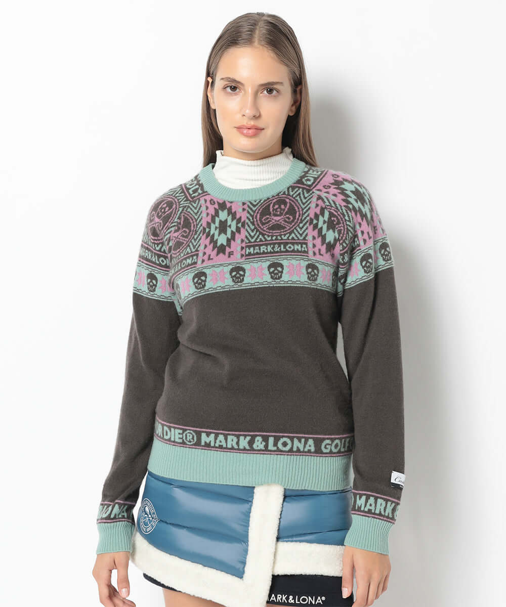 The cashmere jacquard knit and golf items with Ortega patterns showcase a design that stands out for its high-quality combination.