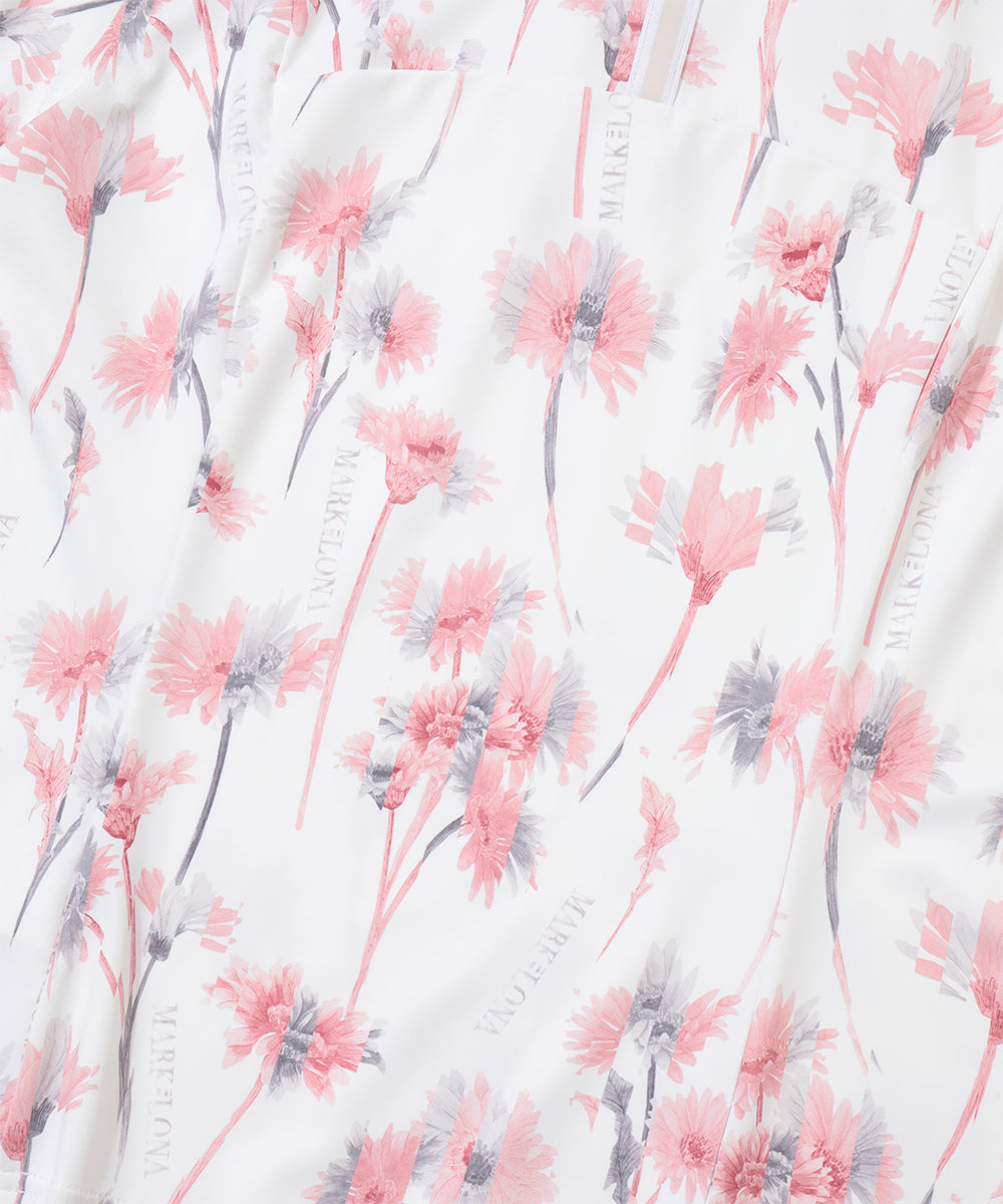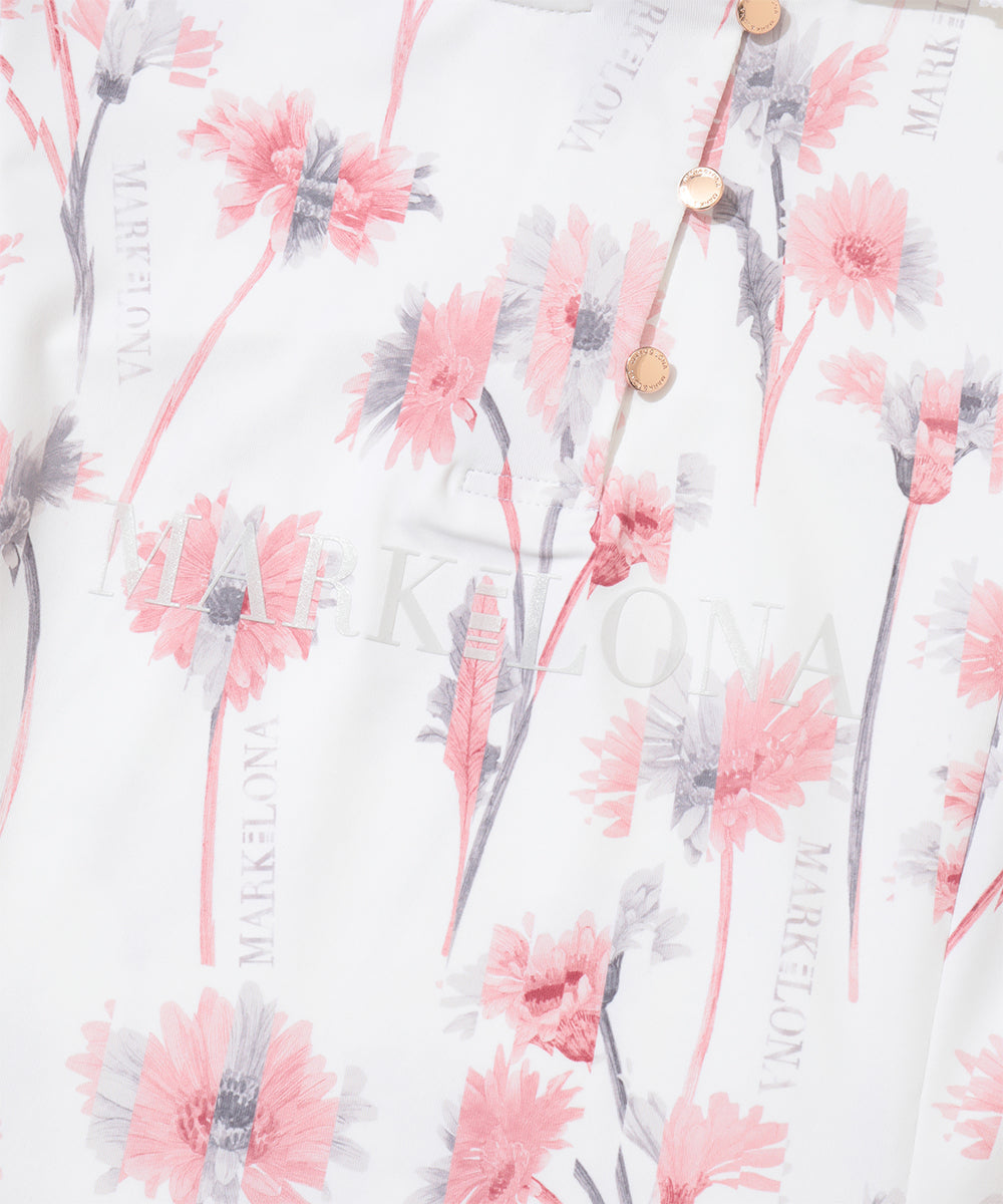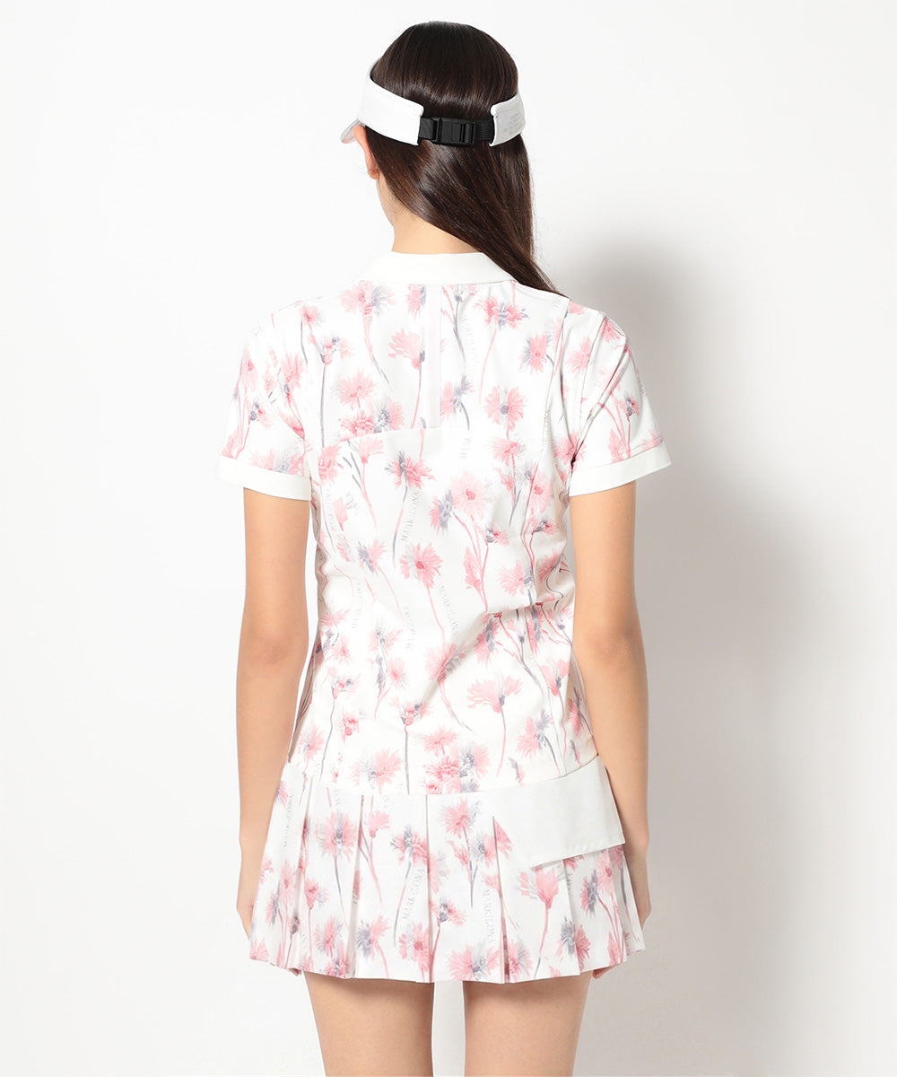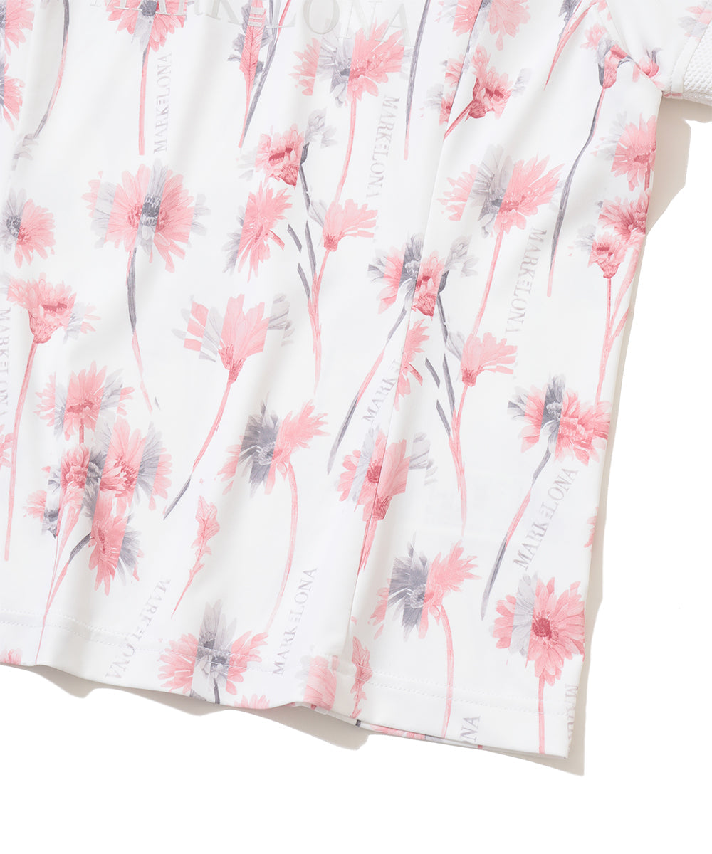 An all-over print polo shirt featuring delicate floral motifs expressed with three-dimensional shading.