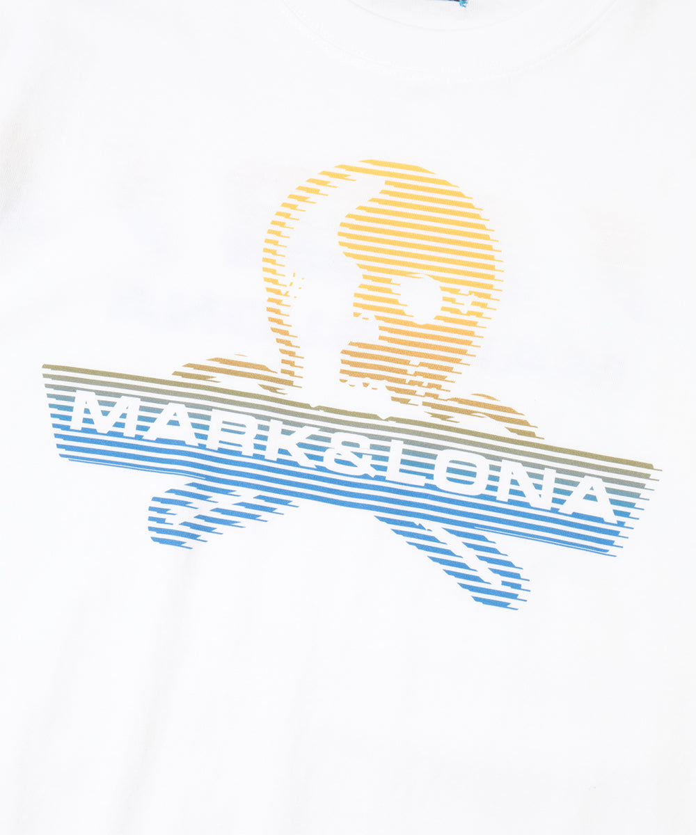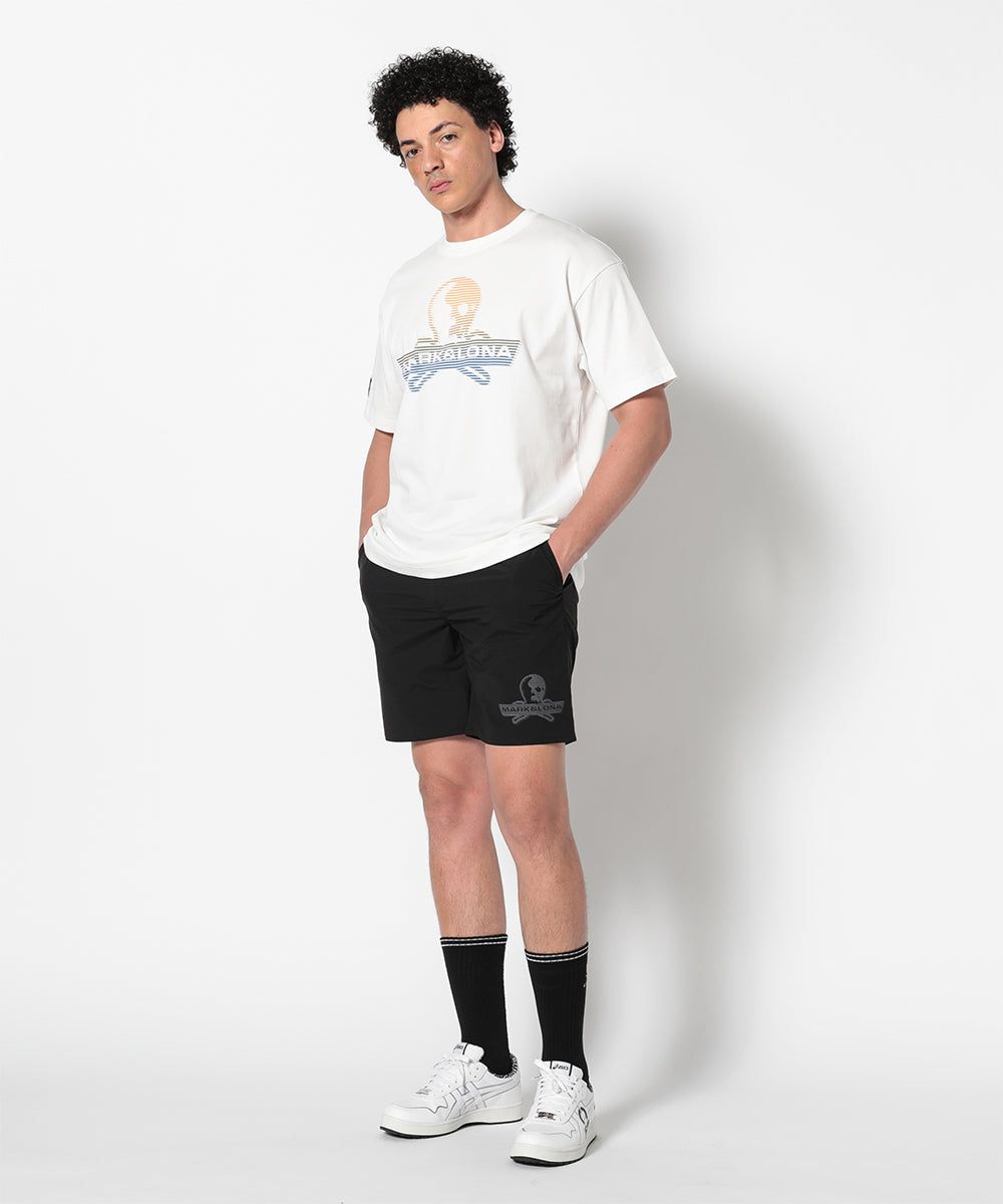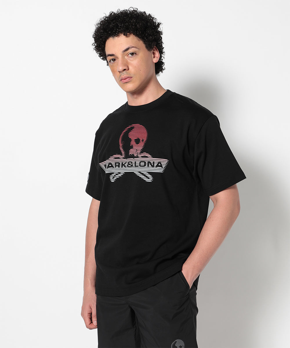 ・An iconic design featuring a skull on the front and a thunder logo on the back, rendered in gradient print.