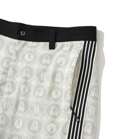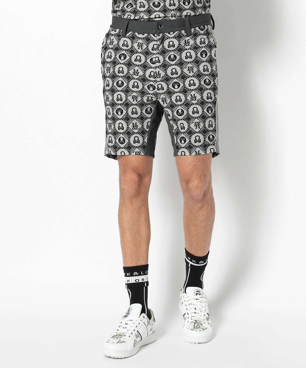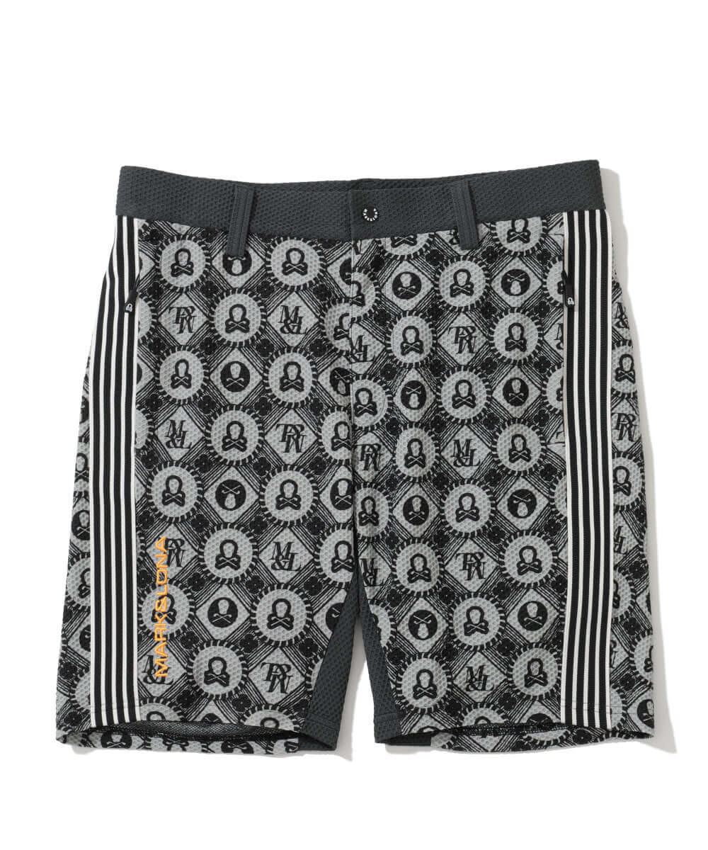Monogram pattern printed shorts. Made of polyester mesh tricot material with excellent stretchability, shape retention, and dry touch. The mesh structure provides excellent breathability and quick-drying properties to keep you comfortable. Relaxed fit silhouette with a moderate fit around the waist. The stripes on the side also give a sharp impression. We recommend coordinating with a top of the same design (MLM-5A-AA12).
