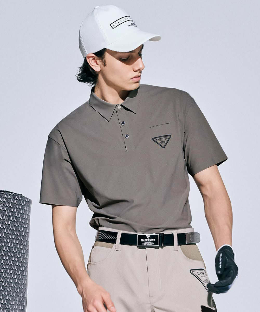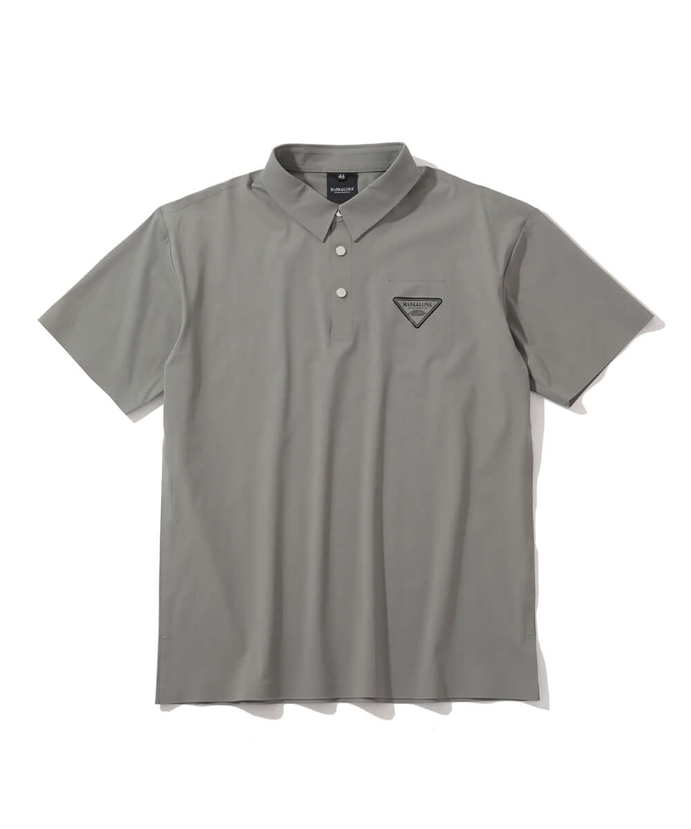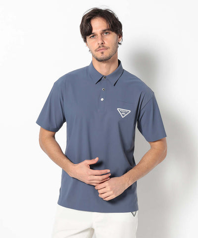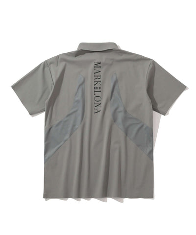 A minimalist polo shirt with a simple logo on the front and back. Made from a patented recycled nylon material named [SENSITIVE] by the Italian company [EURO JERSEY], which combines breathability, moisture absorption, quick drying, and UV protection. Seamless throughout for a stress-free fit. The back is partially switched to mesh material to maintain high breathability. A refined style with room around the body and shoulders, and a sharp collar and sleeves. A regular fit silhouette that follows the natural lines of the body.