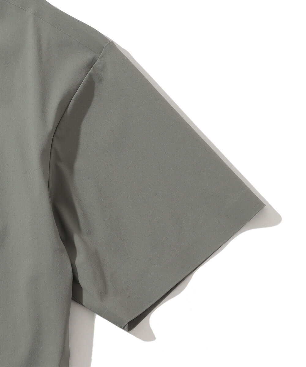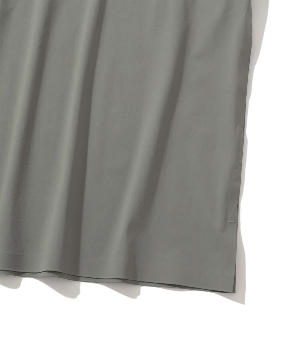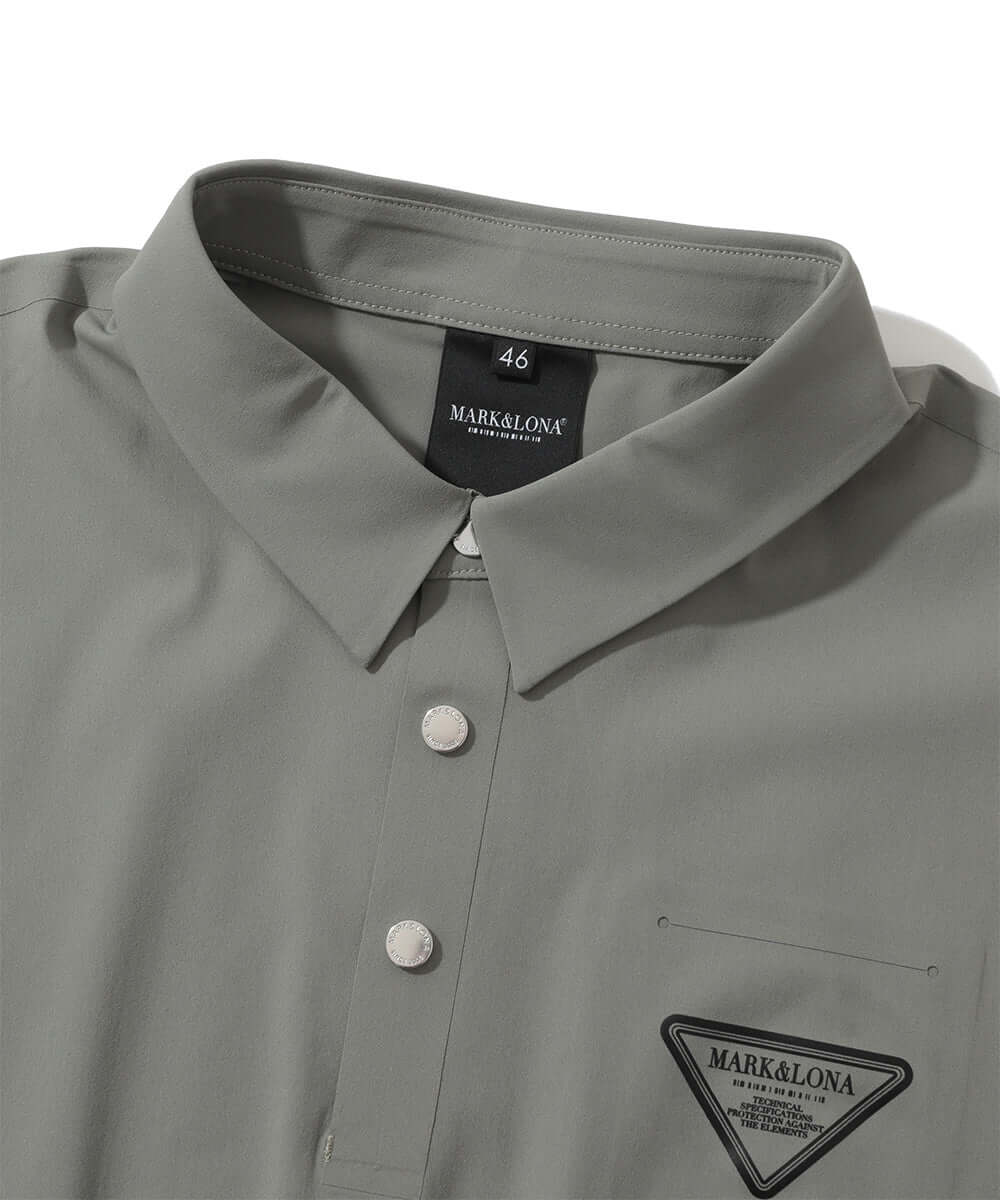 A minimalist polo shirt with a simple logo on the front and back. Made from a patented recycled nylon material named [SENSITIVE] by the Italian company [EURO JERSEY], which combines breathability, moisture absorption, quick drying, and UV protection. Seamless throughout for a stress-free fit. The back is partially switched to mesh material to maintain high breathability. A refined style with room around the body and shoulders, and a sharp collar and sleeves. A regular fit silhouette that follows the natural lines of the body.