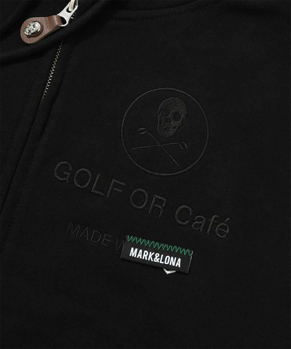 "GOLF OR Café" Black T-shirt. Featuring playful "GOLF OR Café" concept logos printed on the front and back. A hidden message adds a unique touch under the green houndstooth-stitched brand tag on the left chest. Designed in a relaxed fit silhouette. cotton T-shirt has a soft, comfortable feel. A casual piece perfect for coffee breaks or post-round relaxation.