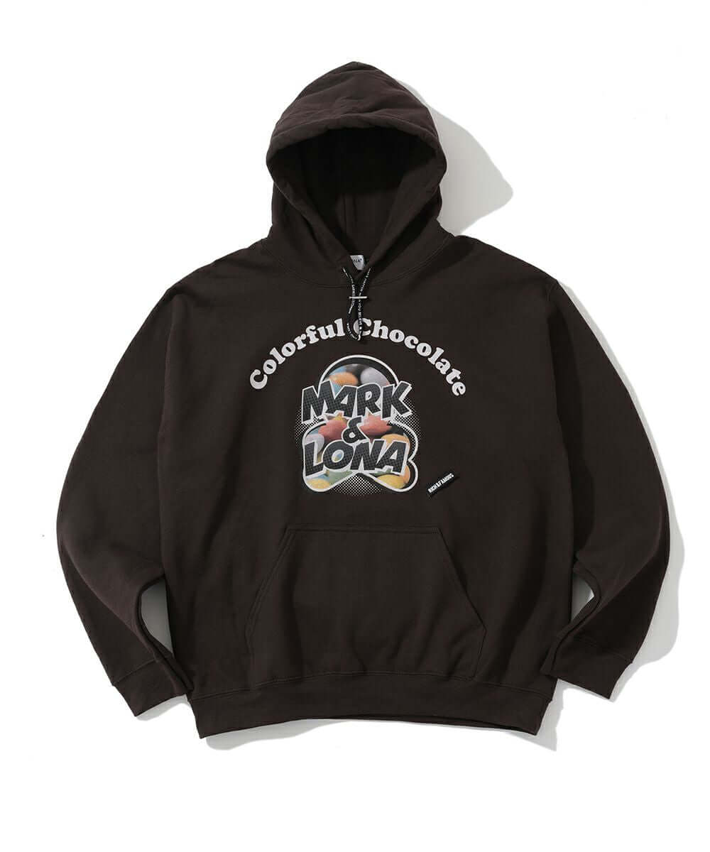 A hoodie with an original package design to commemorate the release of "M & L Pop Tone Chocolate". A catchy design with a POP original logo print and tag inspired by “candy” (small sweet sweets). The body is made of 8.0 oz preshrunk cotton and polyester fleece material. The material is soft to the touch and has reduced fuzz. In addition, the Kodari specification is finished with double stitching throughout. This piece is perfect for daily use in spring.