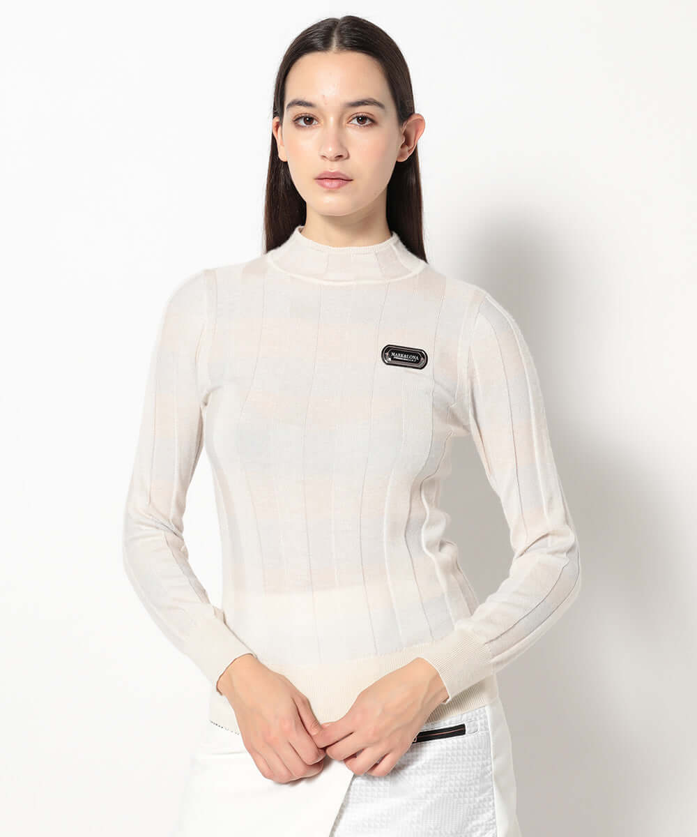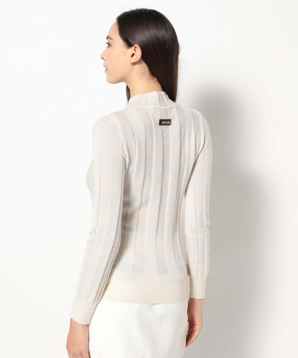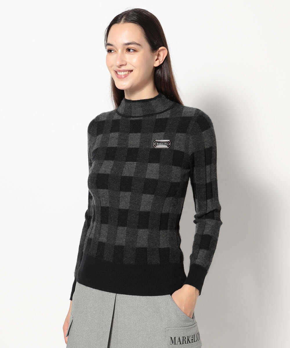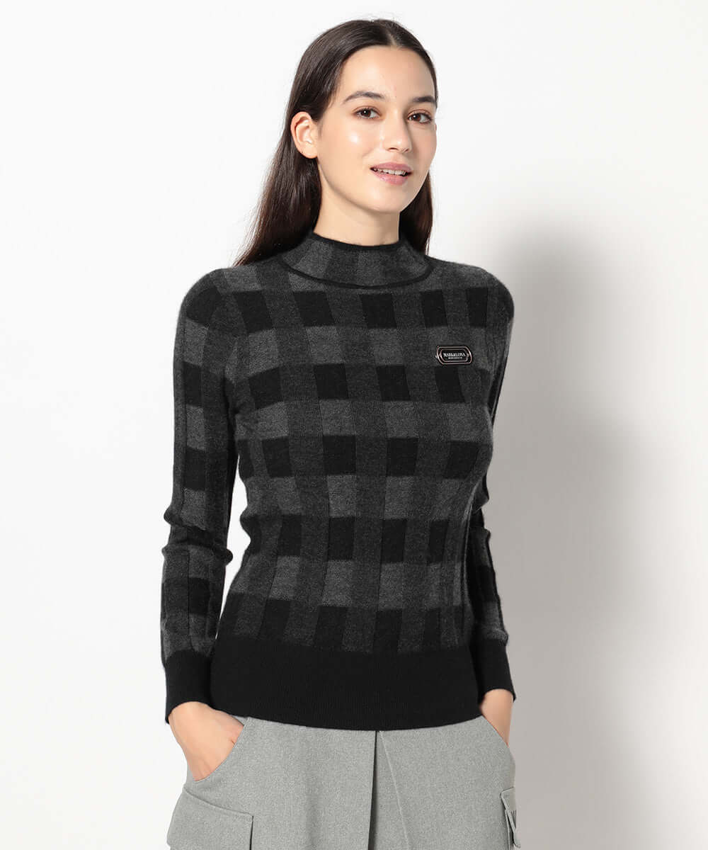 This high-neck cashmere long-sleeve knit offers exquisite comfort and elegance. Knitted in a tone-on-tone gingham check pattern, this luxurious cashmere knit offers a smooth feel and lightweight comfort.