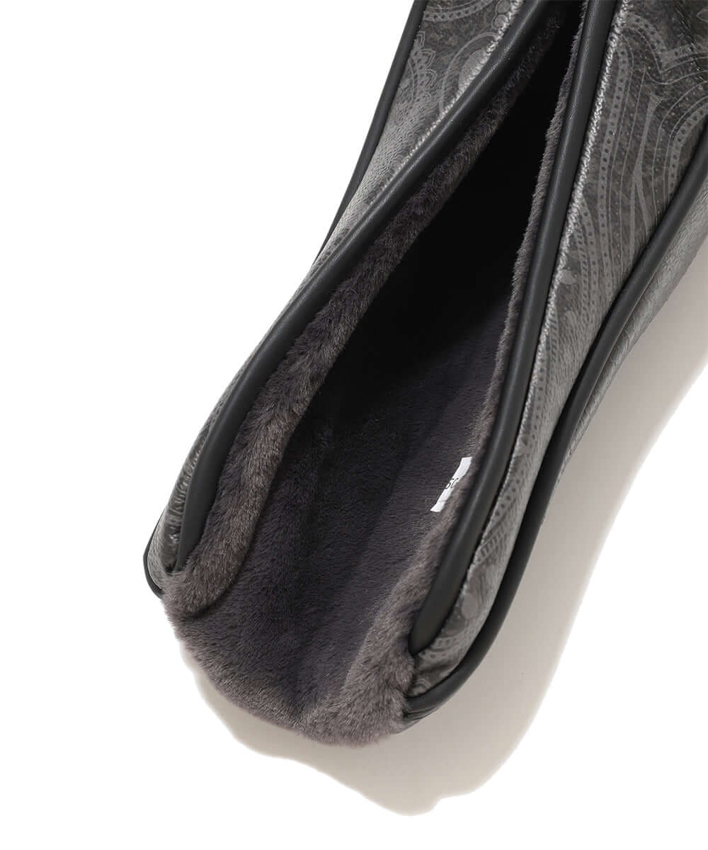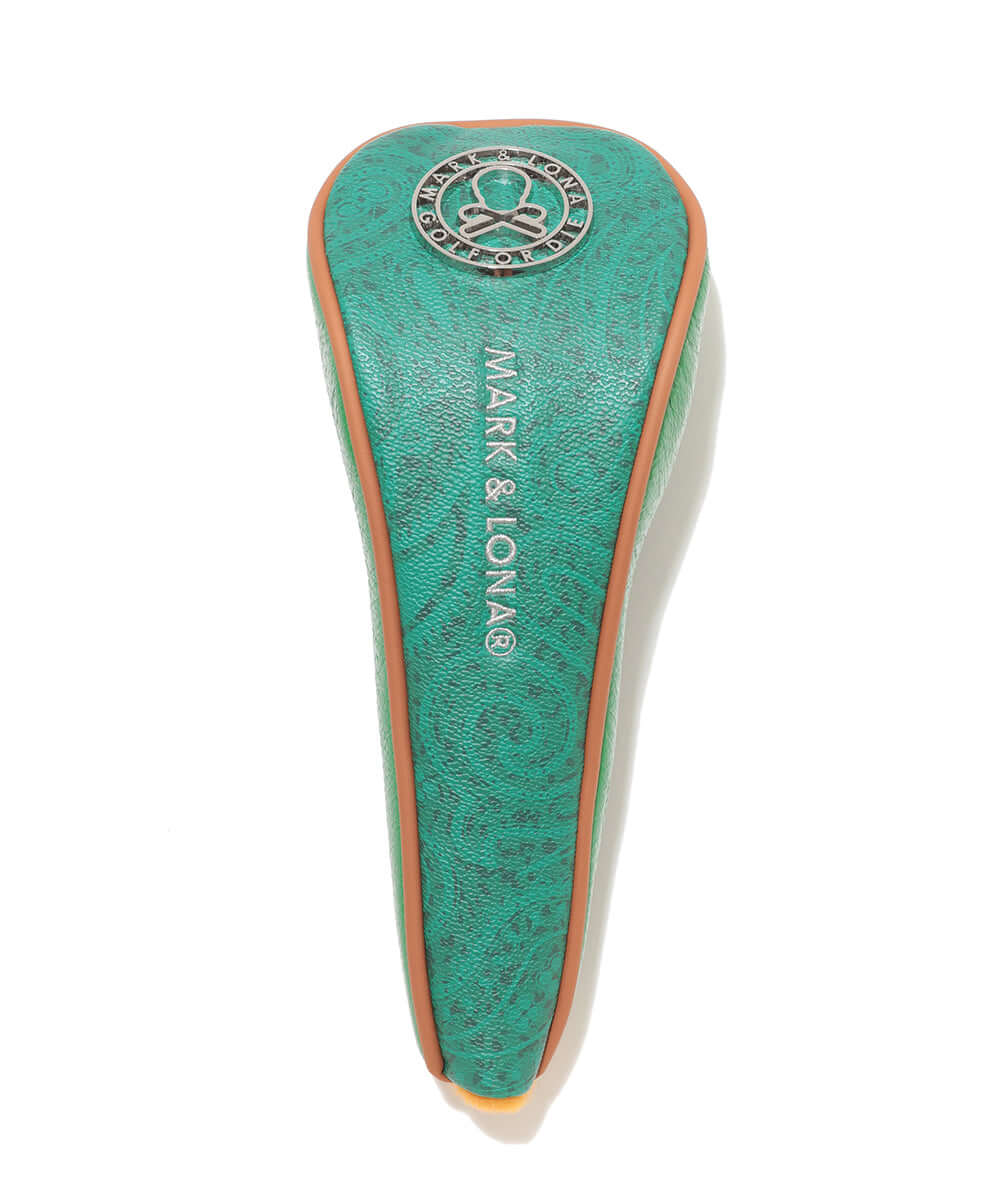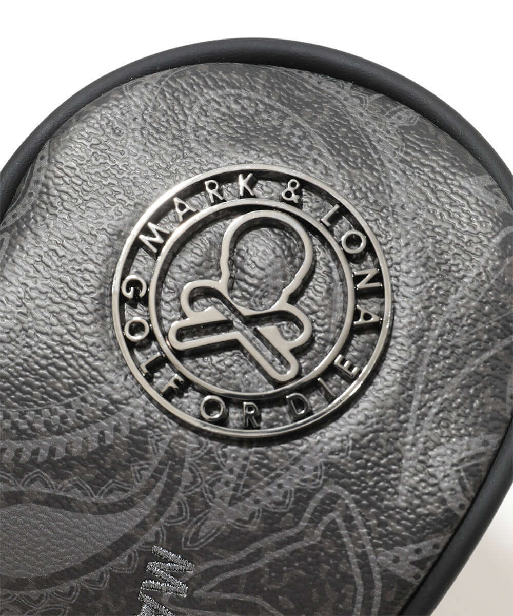 A fairway wood head cover with an elegant tone-on-tone paisley print and a combination of different materials.