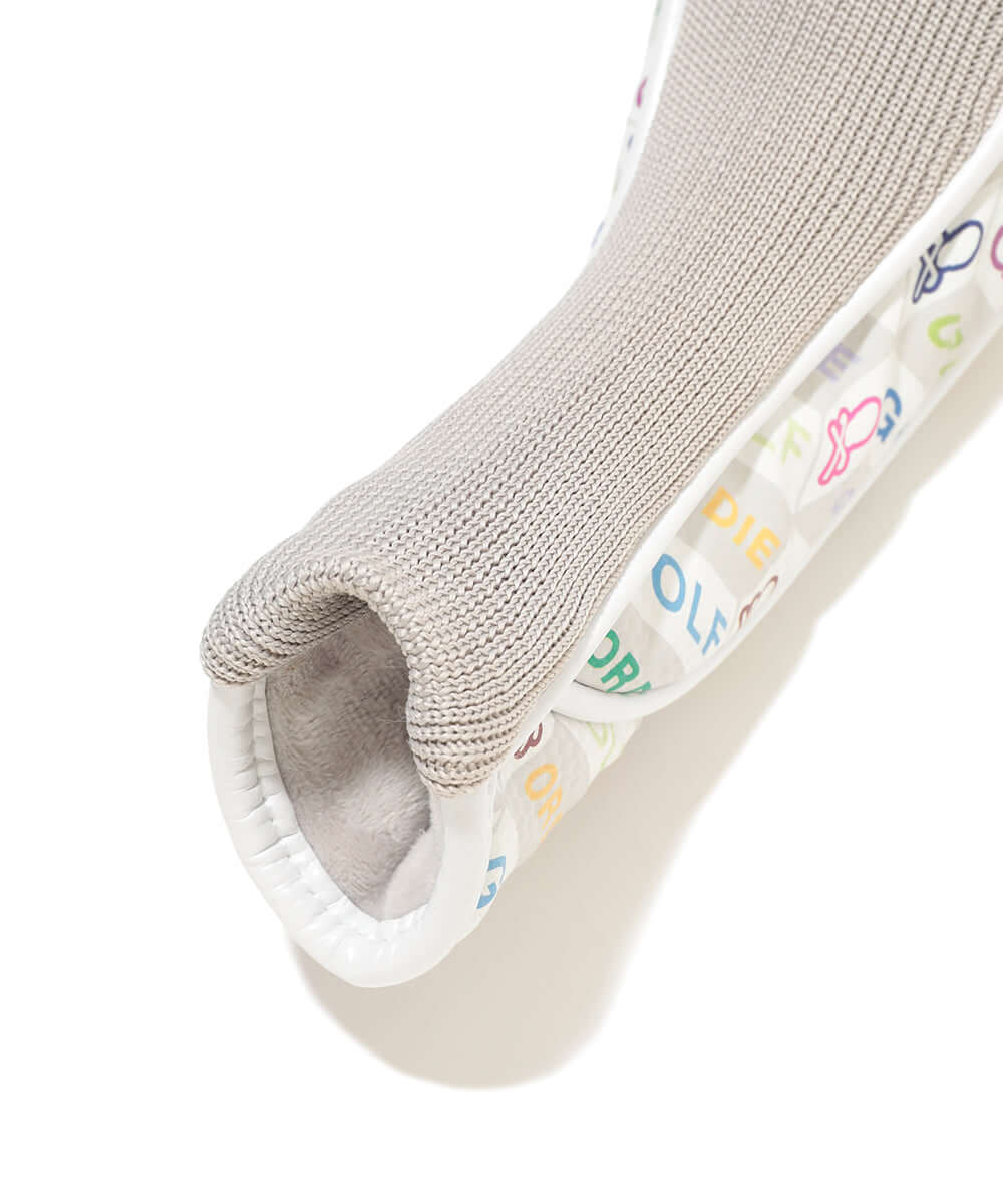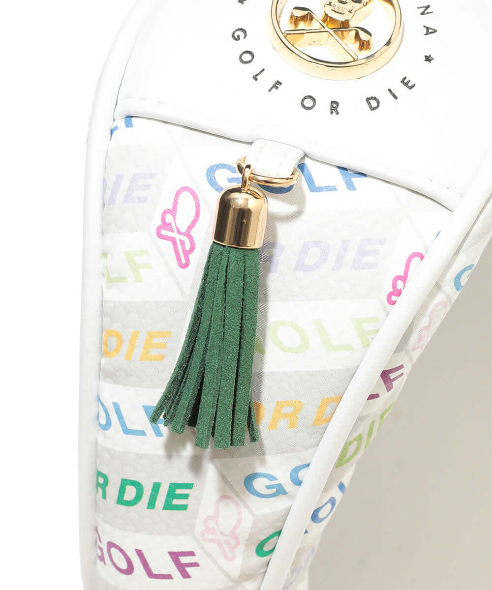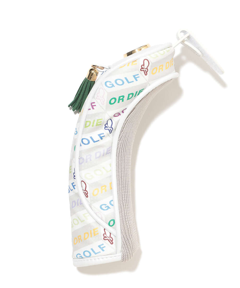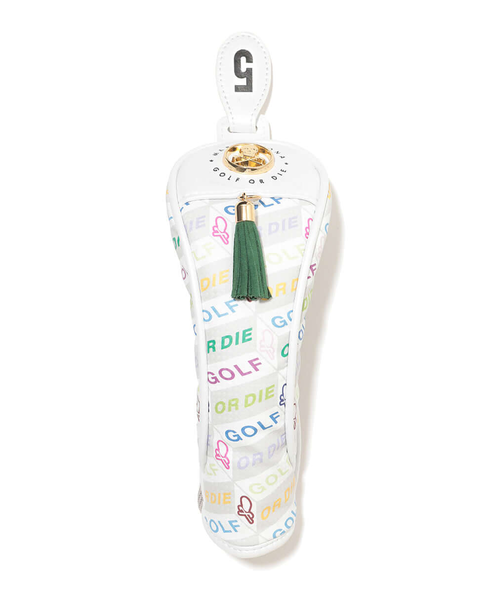 This fairway wood headcover features an eye-catching geometric pattern composed of multicolored lettering.