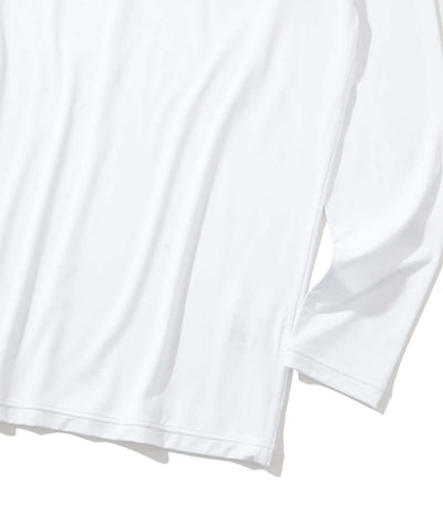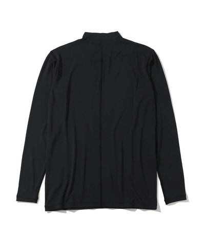 빈 해골 로고가 있는 모크 넥 긴팔 셔츠. 타이트한 실루엣의 이너 타입. 고신축성 소재로 빠른 건조, UV 차단, 쿨링 터치 기능이 있습니다. 편안한 착용감을 위한 평면 봉제(부풀어 오르지 않는 평면 봉제) 사양. 다양한 아이템과 함께 이너 레이어로 활용할 수 있는 다재다능한 아이템입니다.