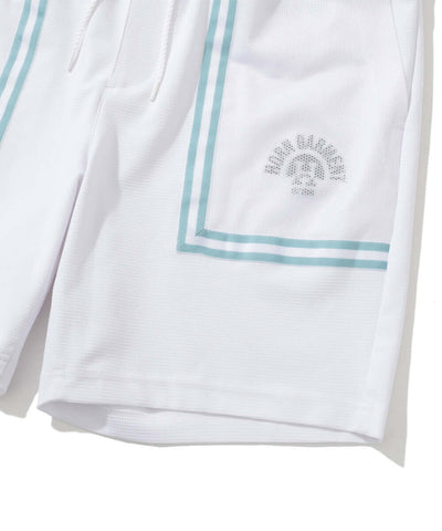 Seluar pendek ini menampilkan poket jejaring di bahagian depan sebagai titik reka bentuk. Poket jejaring tersebut disempadani dengan pita grosgrain dalam warna kontras. Frasa ikonik jenama turut disulam dalam warna-warna cerah di bahagian belakang. Diperbuat daripada bahan poliester regangan yang ringan. Item ini sesuai untuk pusingan golf dan juga kegunaan harian di sekitar bandar.