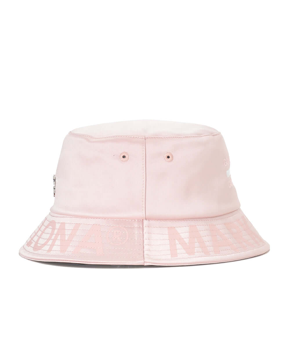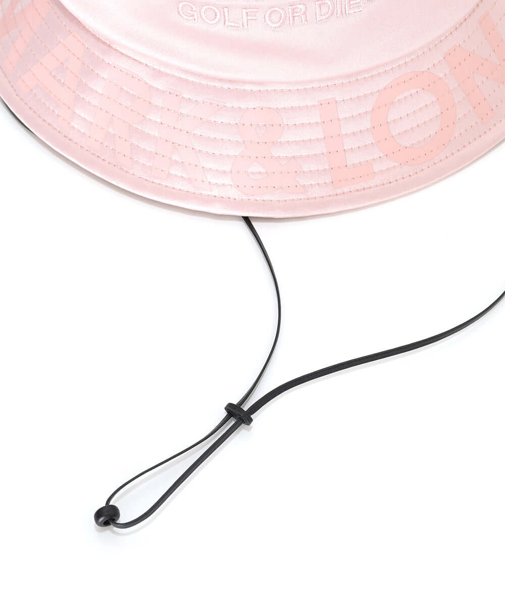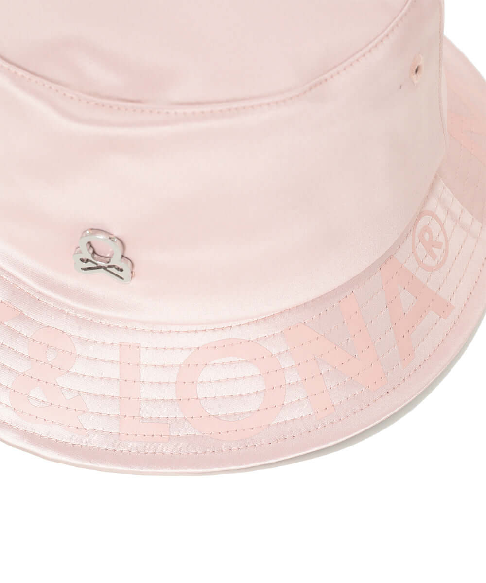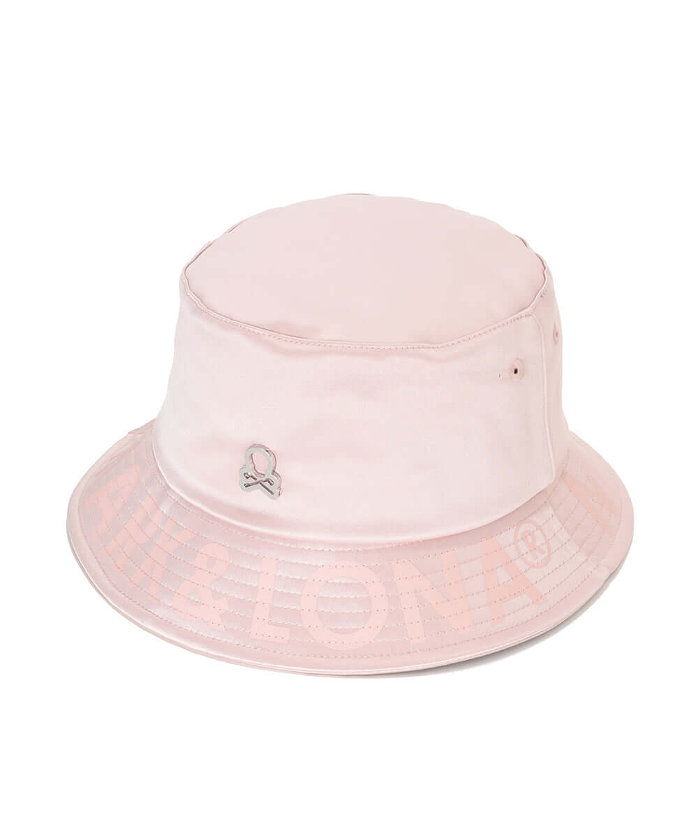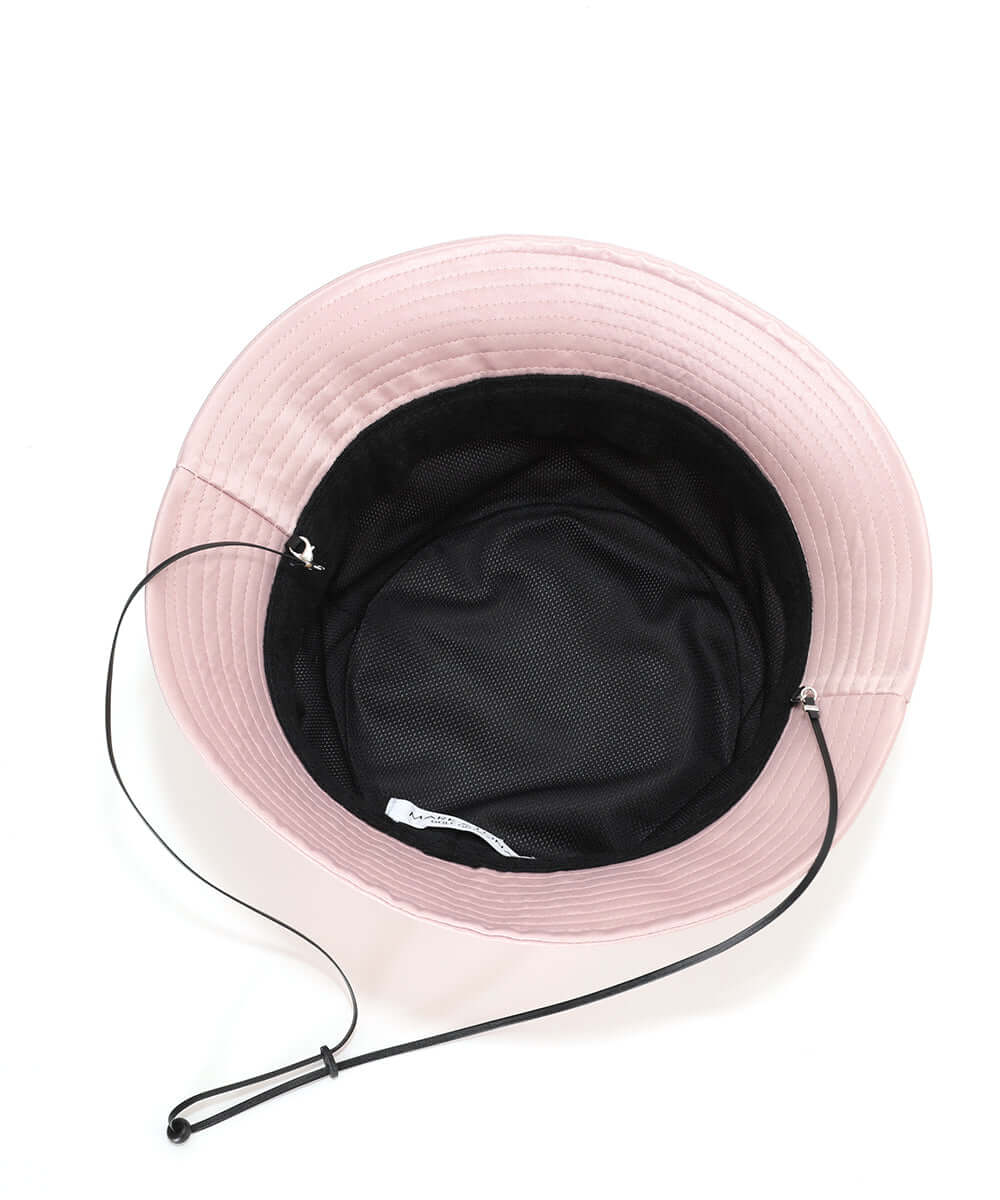 Topi bucket satin dengan kilauan elegan dan tekstur licin.