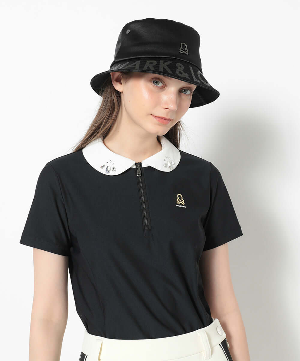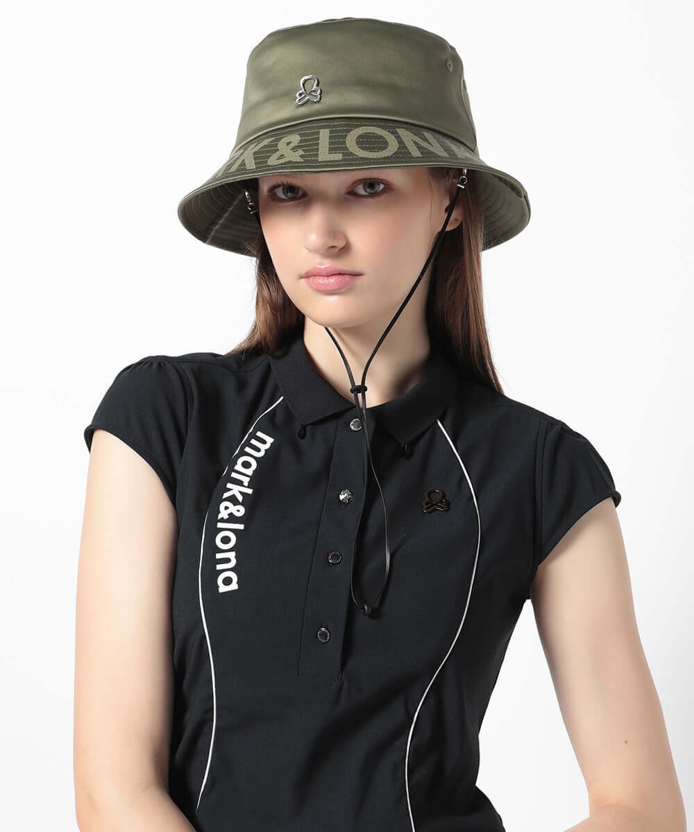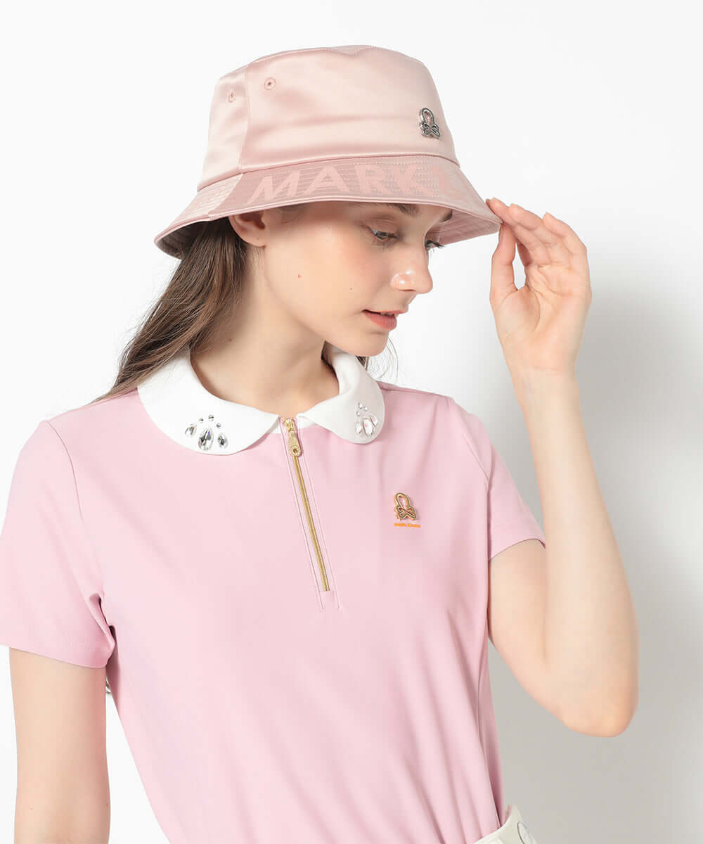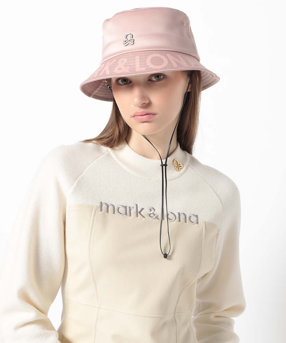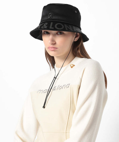 Topi bucket satin dengan kilauan elegan dan tekstur licin.