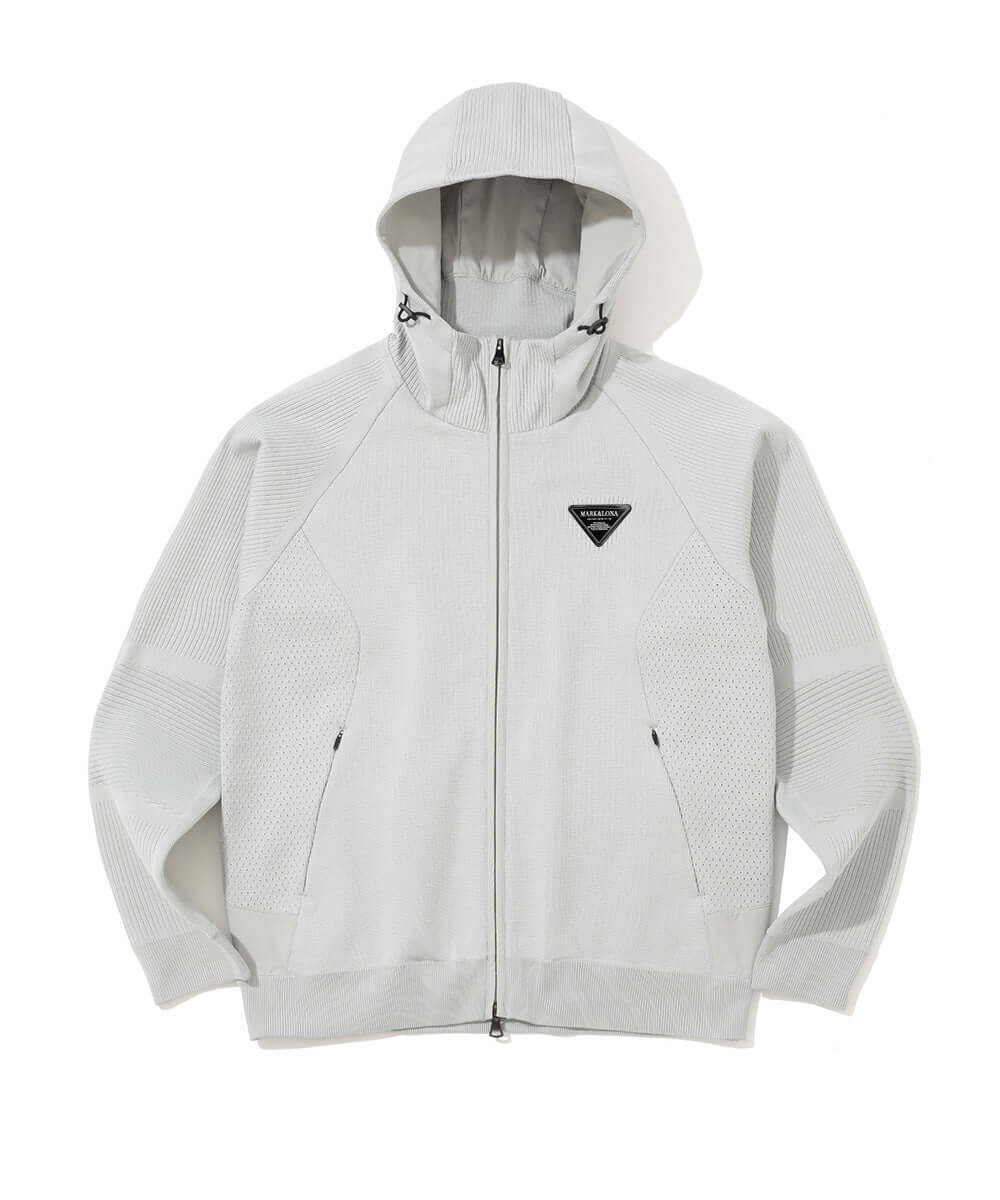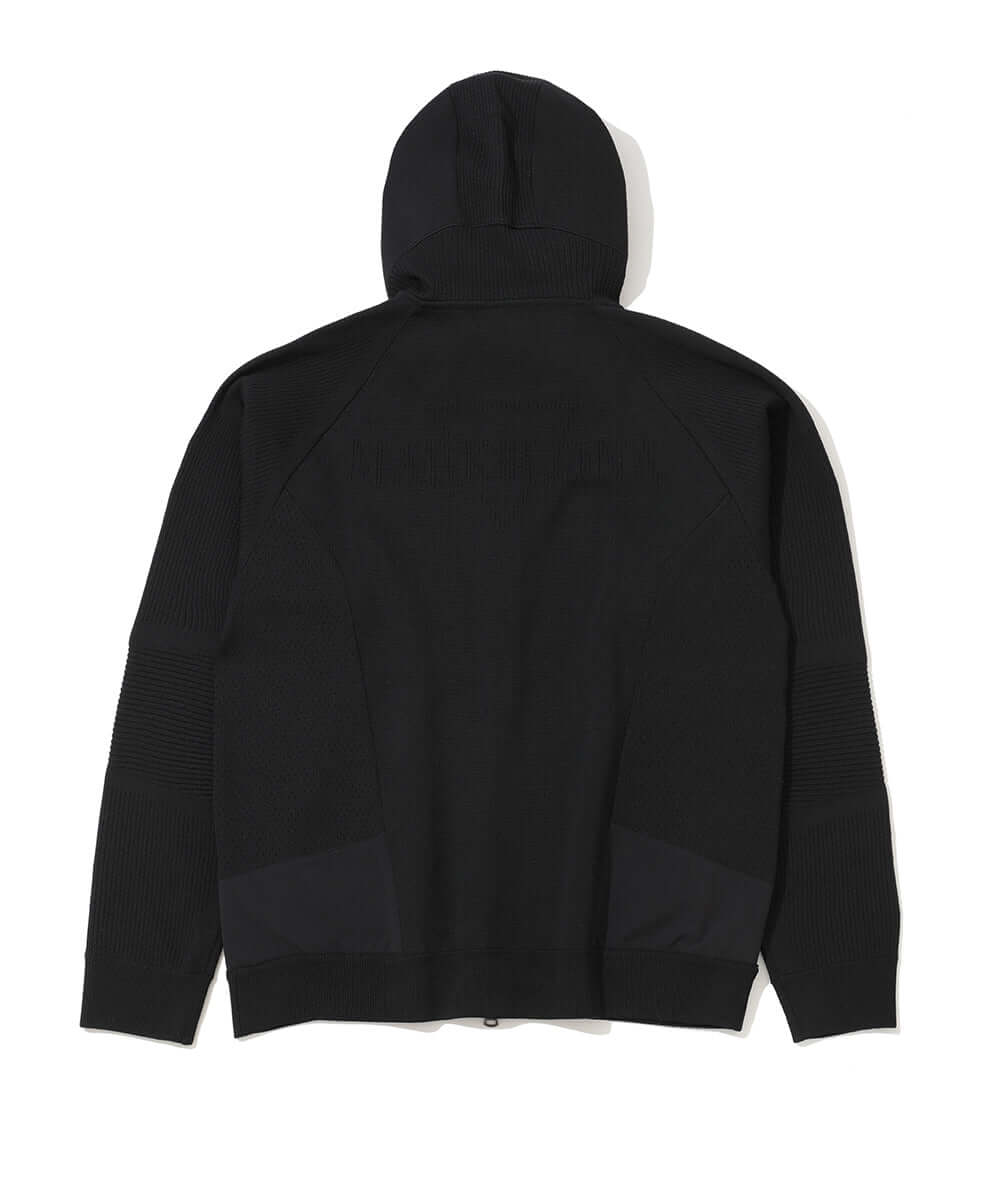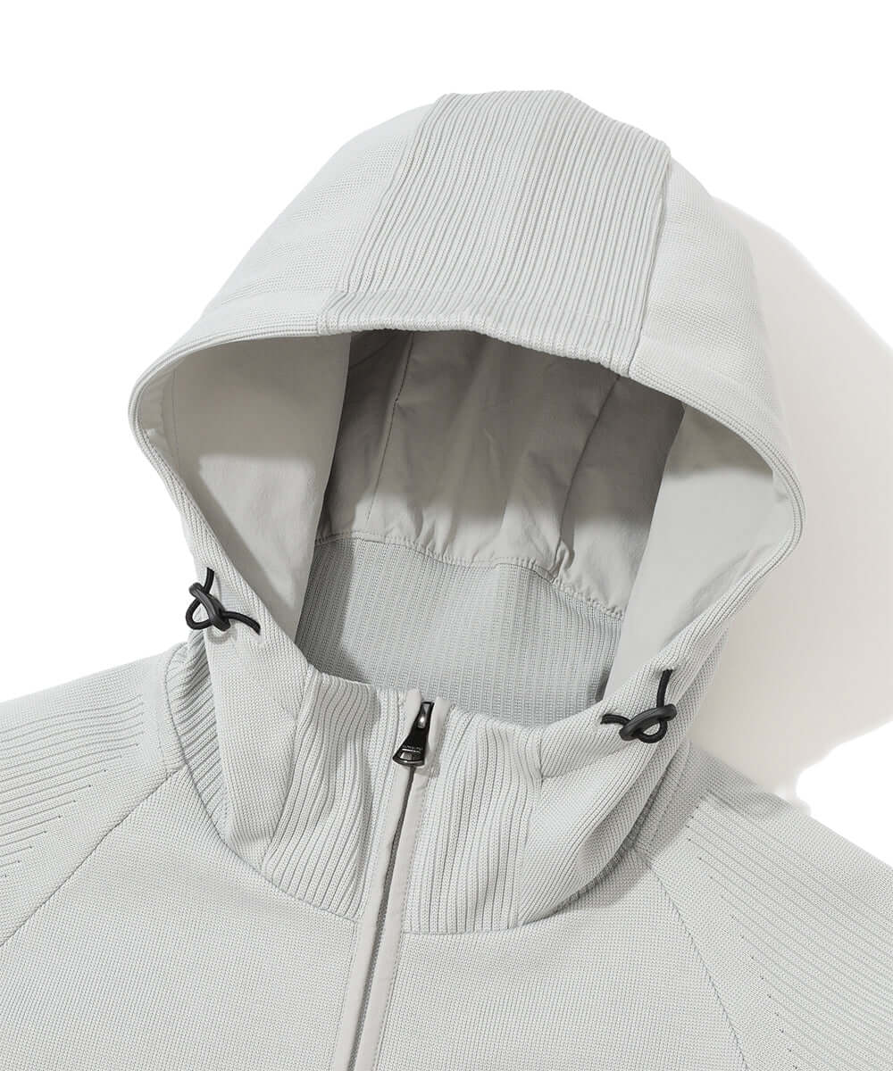 This hooded knit parka combines sophisticated design with high functionality. Advanced technology combines multiple knitting patterns to create a stylish silhouette and comfortable fit.