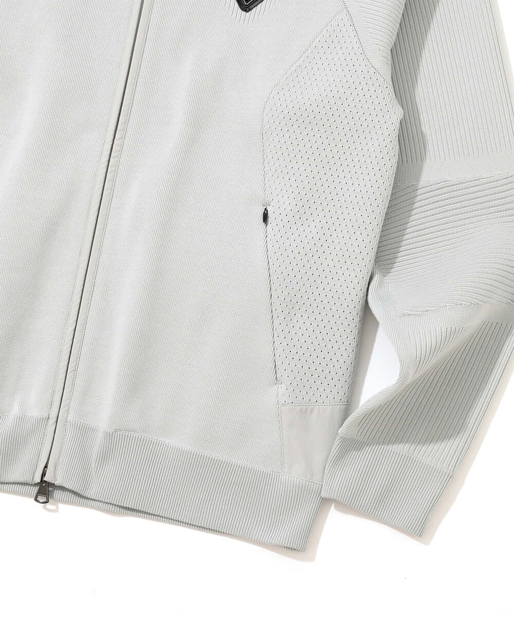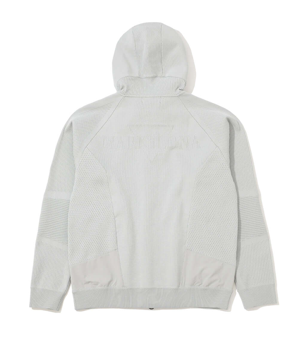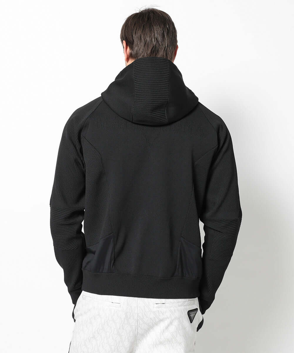 This hooded knit parka combines sophisticated design with high functionality. Advanced technology combines multiple knitting patterns to create a stylish silhouette and comfortable fit.