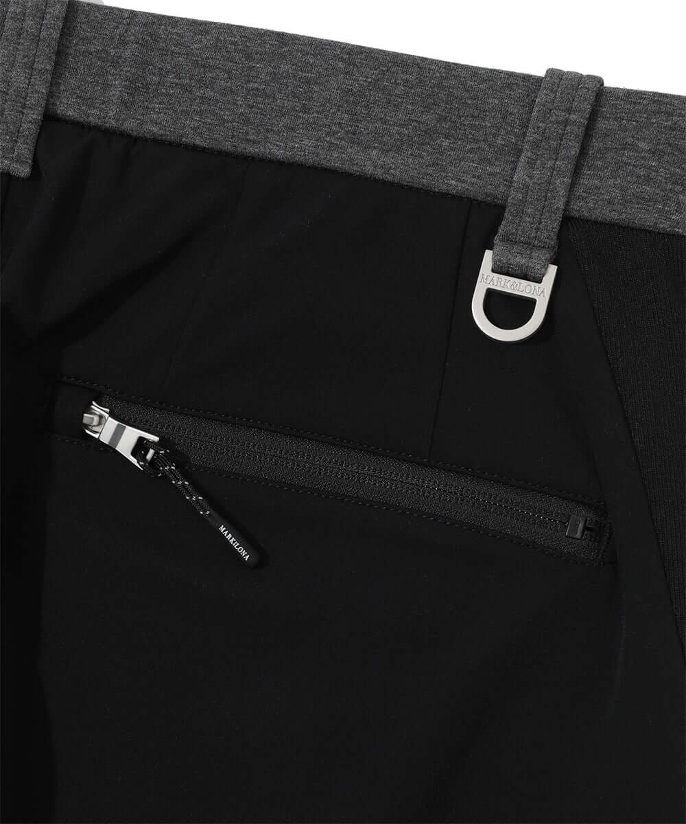 These technical long pants feature a combination of three different materials, each with its own unique functionality, for a comfortable fit and a refined silhouette.