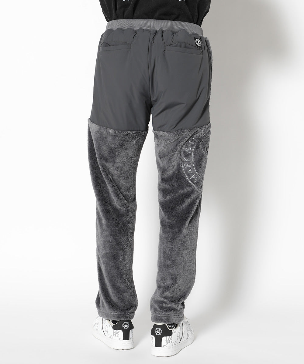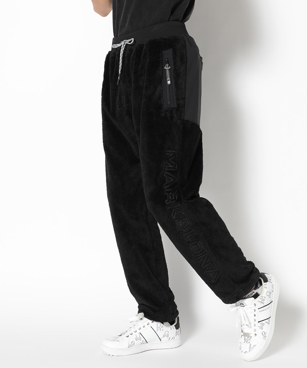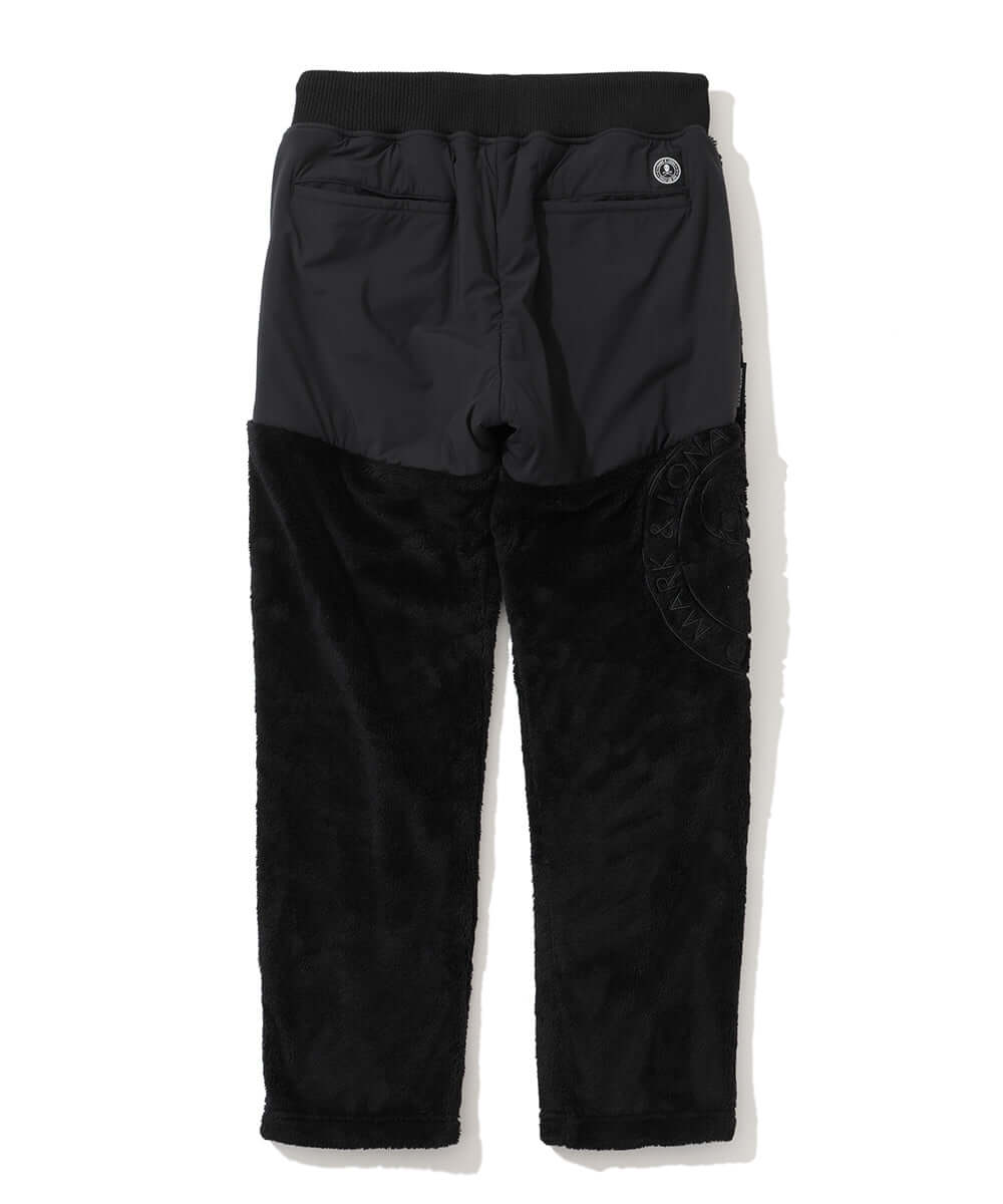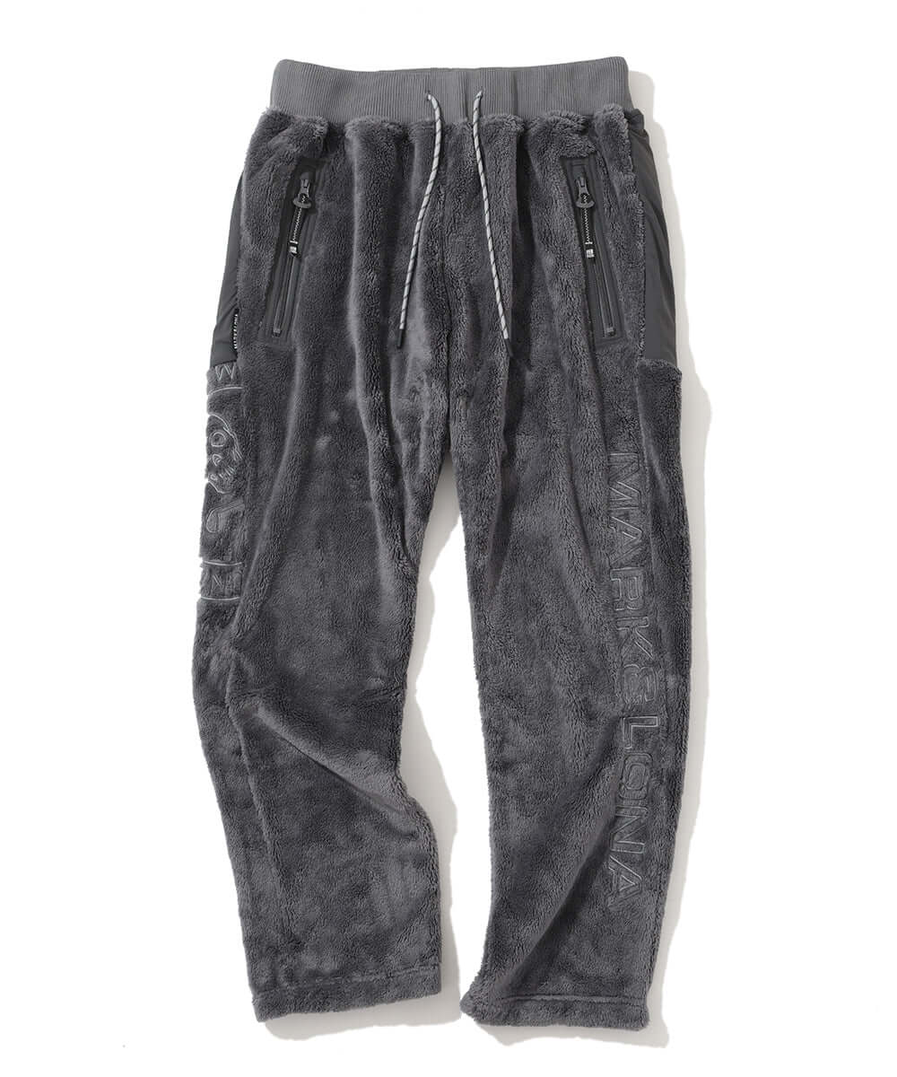 These boa fleece pants feature a contrasting material combination, accented by embroidered brand logos on both sides. Crafted from soft, smooth boa fleece, these pants exude a relaxed vibe.