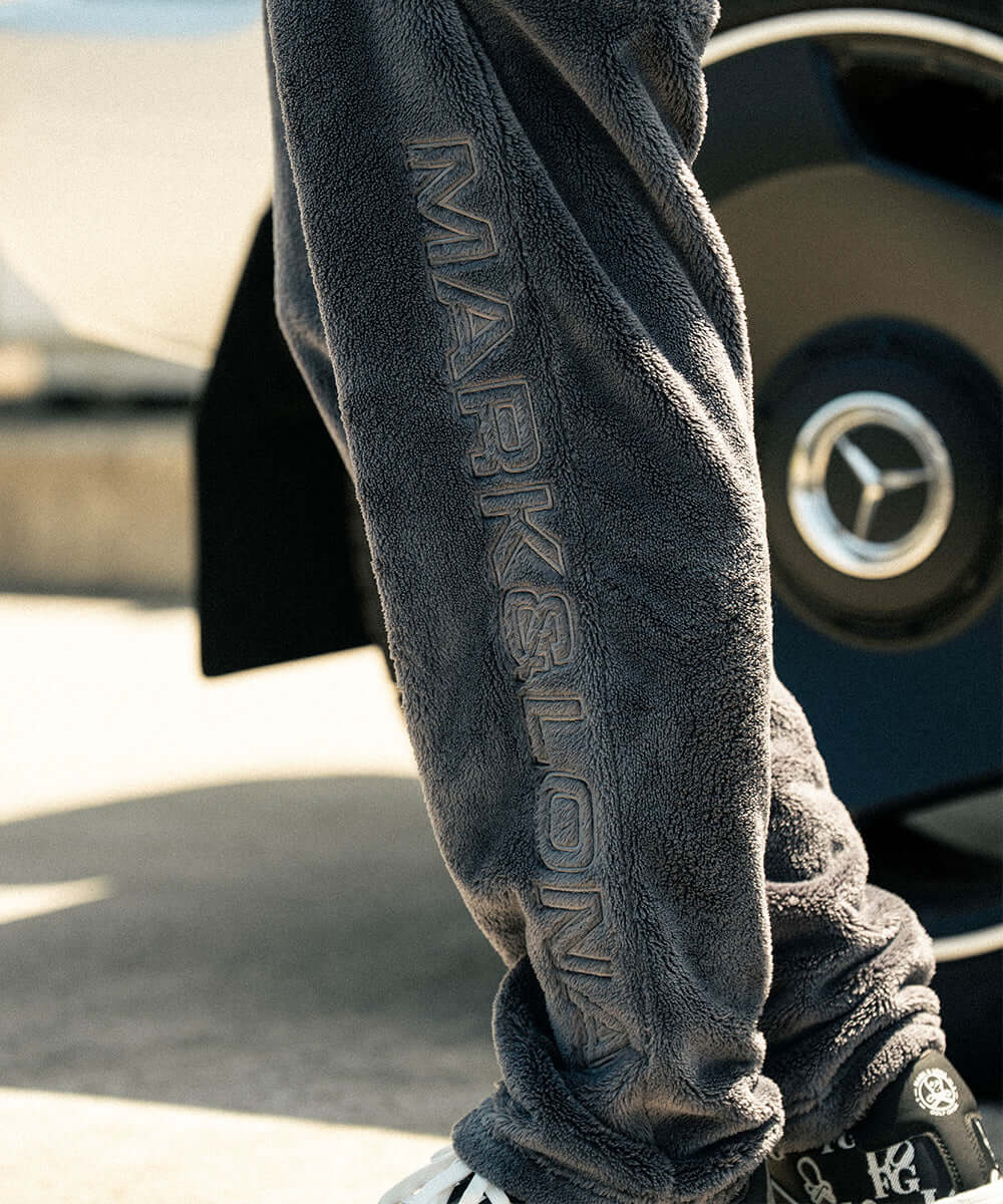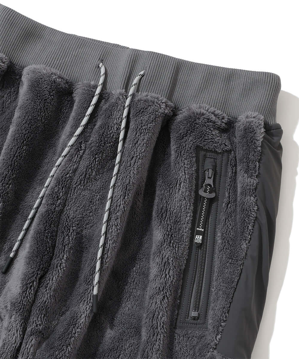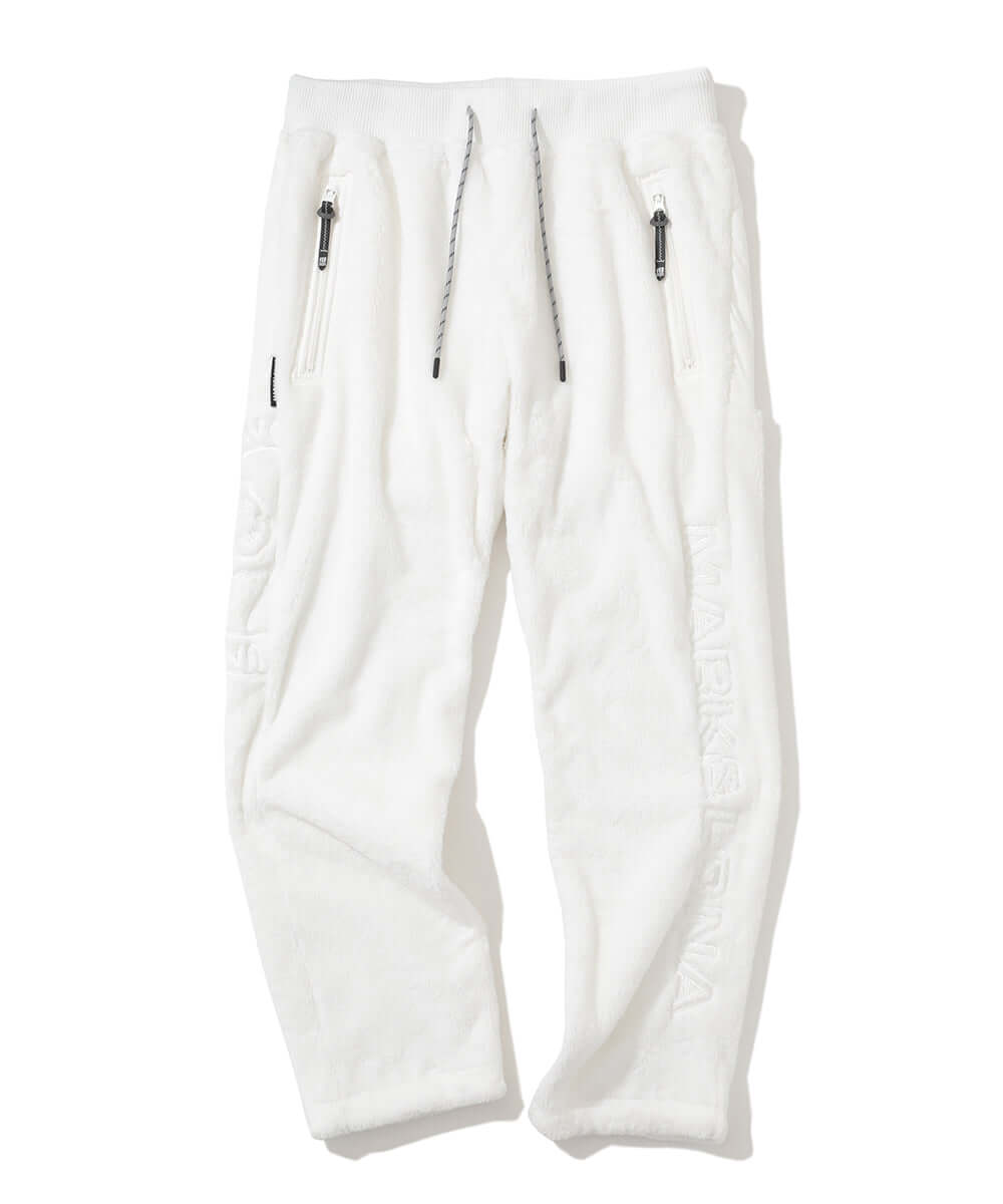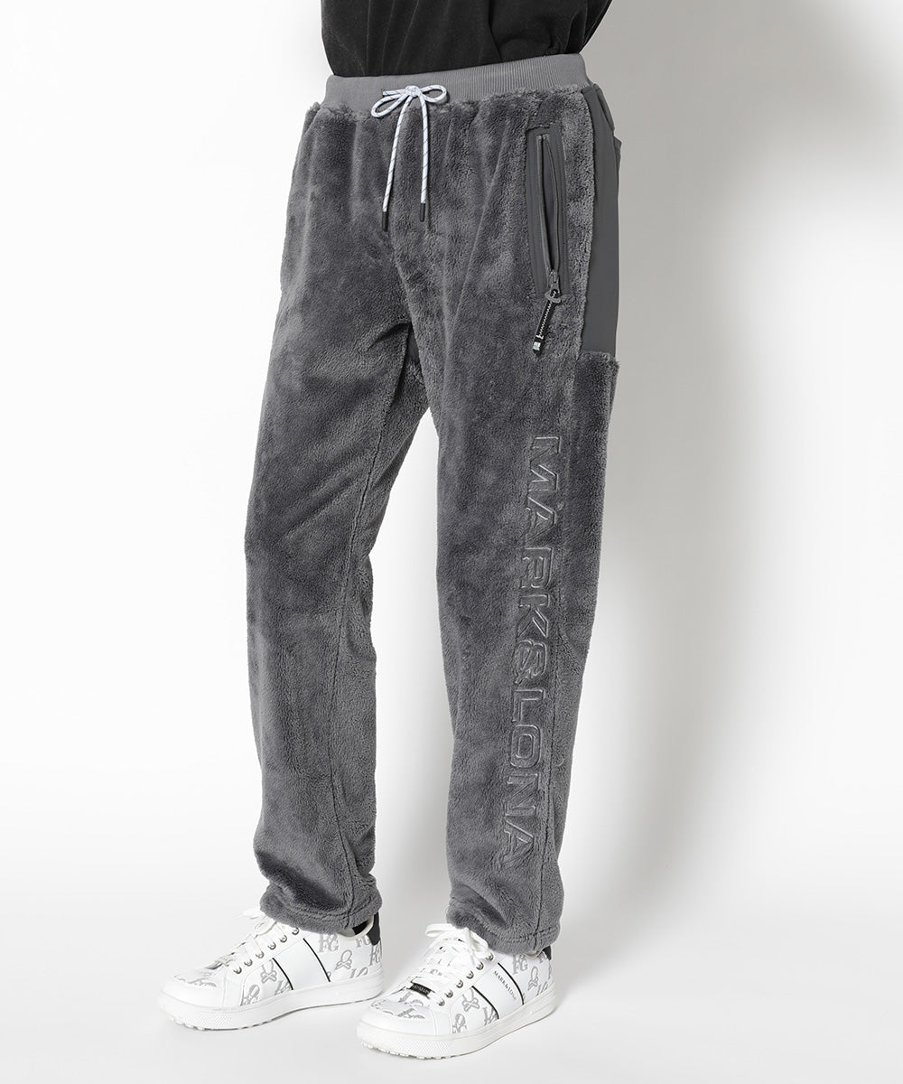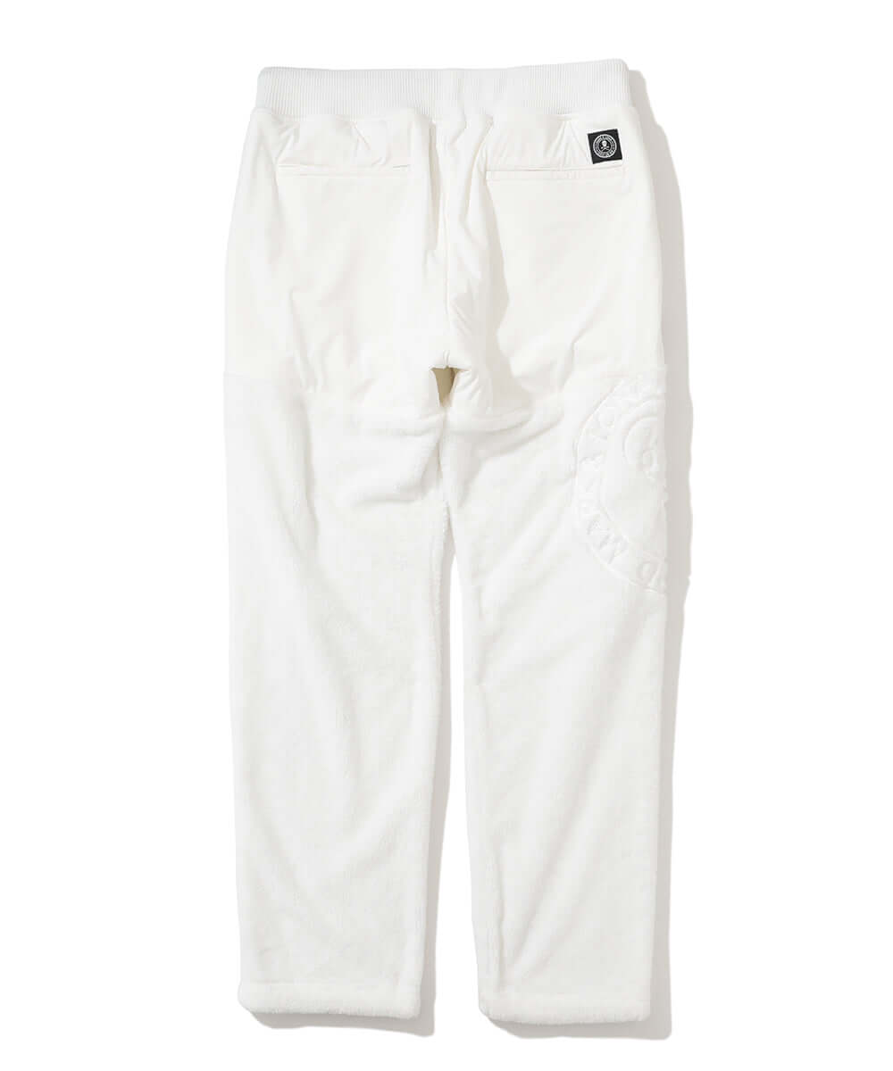 These boa fleece pants feature a contrasting material combination, accented by embroidered brand logos on both sides. Crafted from soft, smooth boa fleece, these pants exude a relaxed vibe.