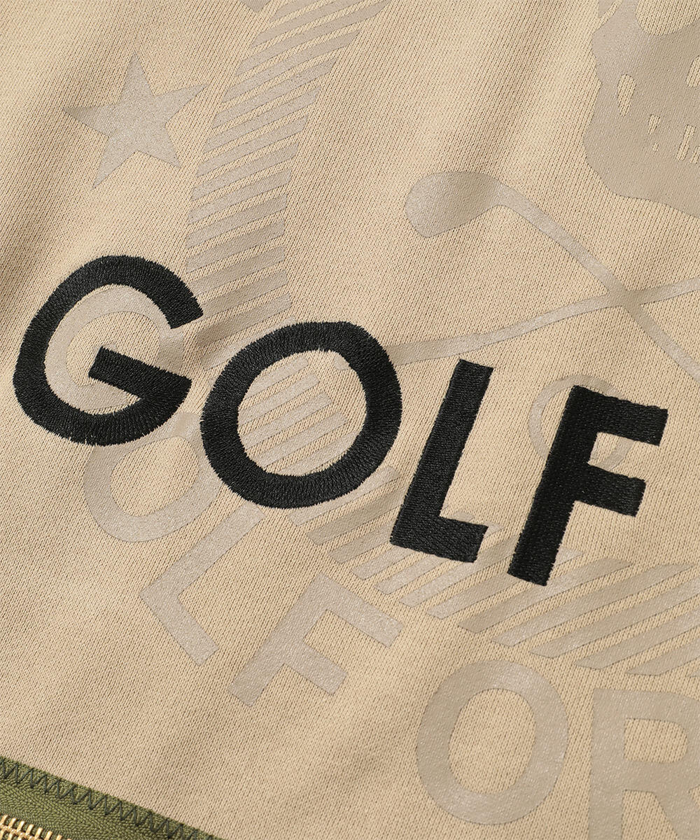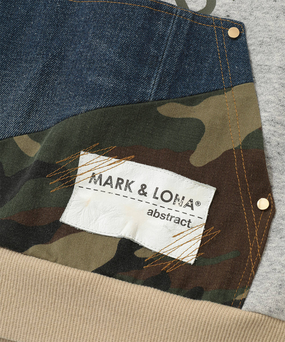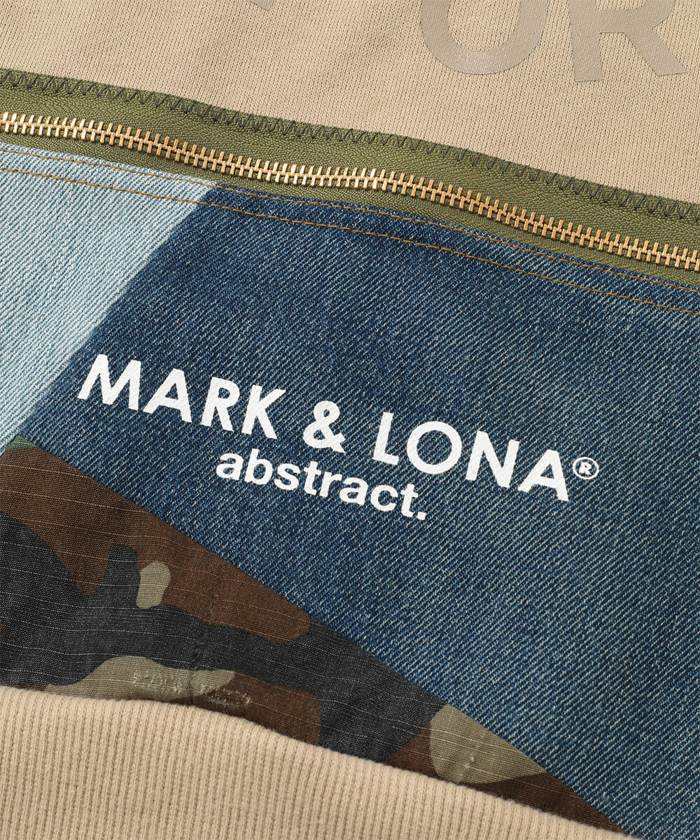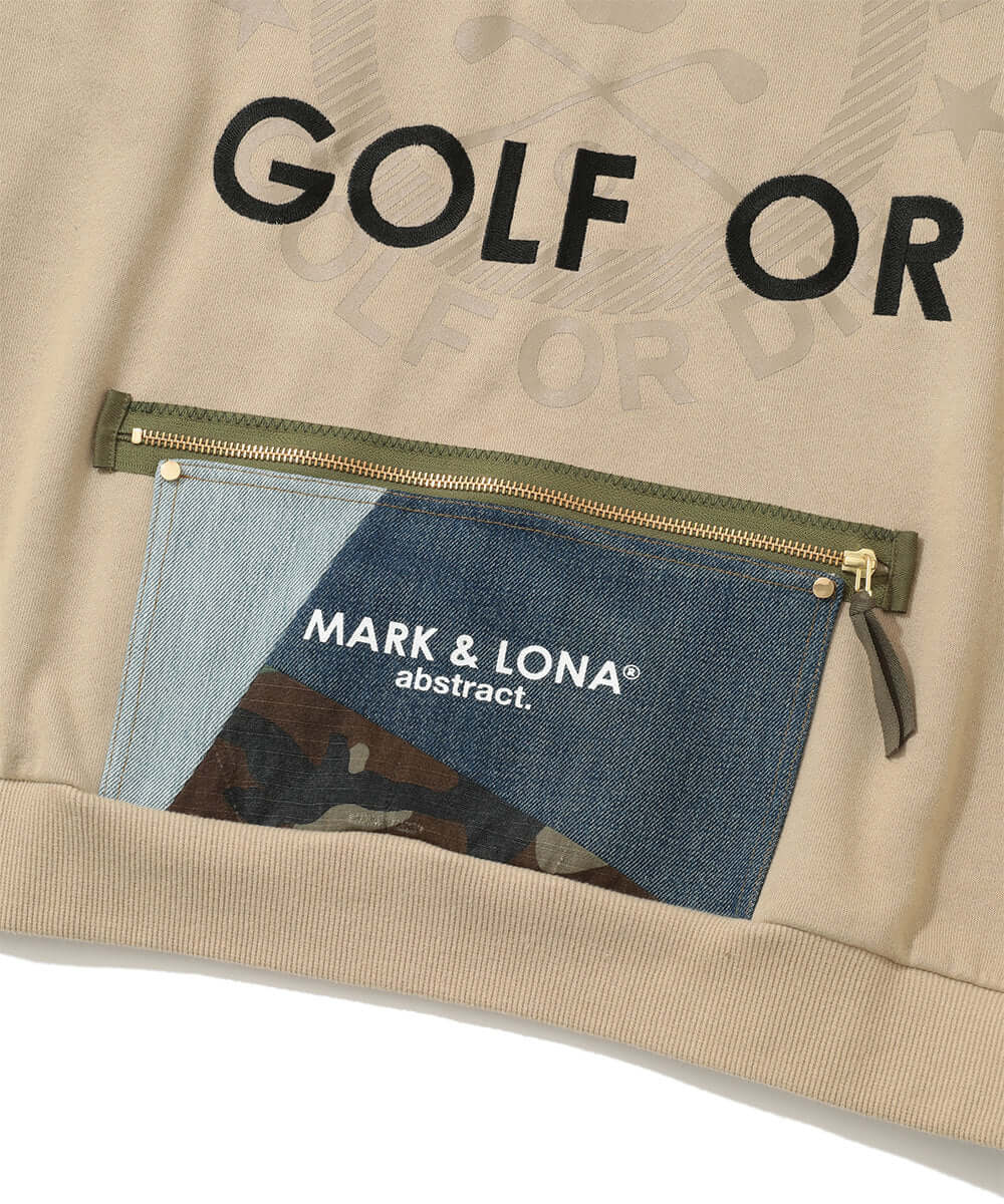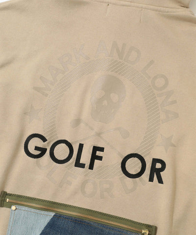 On the front, a circle skull logo is placed, which is completed by skillfully combining the prints of each patchwork part. The details are finished with delicate and excellent technique. In addition, the letter graphic embroidery of "MARK AND LONA" and "GOLF OR DIE" overlaps, and it is an accent that makes a strong presence on the patchwork.