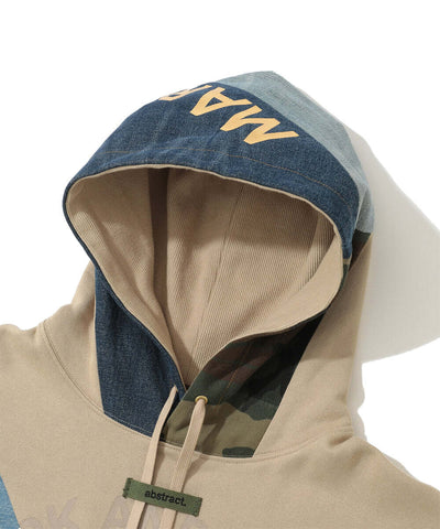From the "Abstract Series," which dismantles vintage denim and military wear and reconstructs them with a unique sensibility, comes this remade hooded parka. The patchwork design, which mixes various materials, is expressive in every piece, and the contrast between materials and textures stands out. These parts are carefully sewn together by craftsmen one by one, giving them a presence as truly one-of-a-kind pieces.