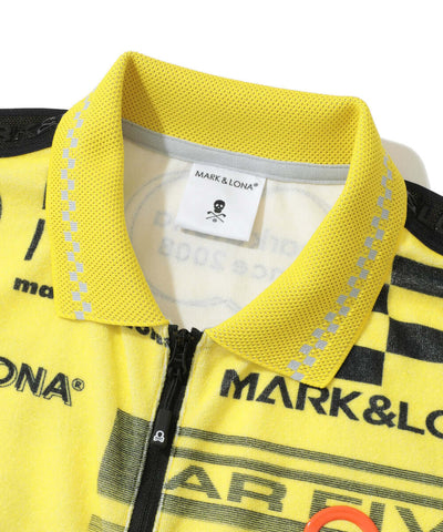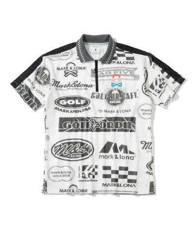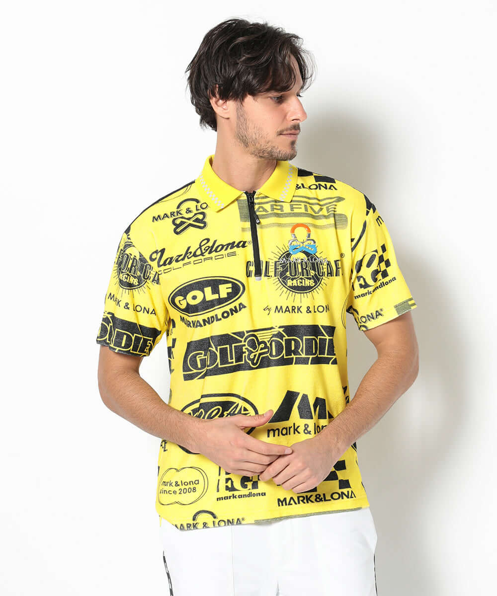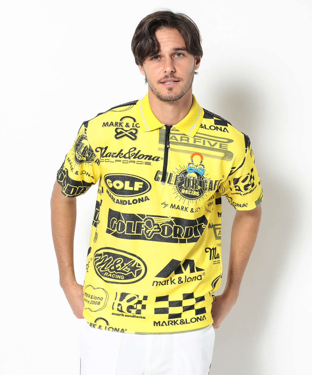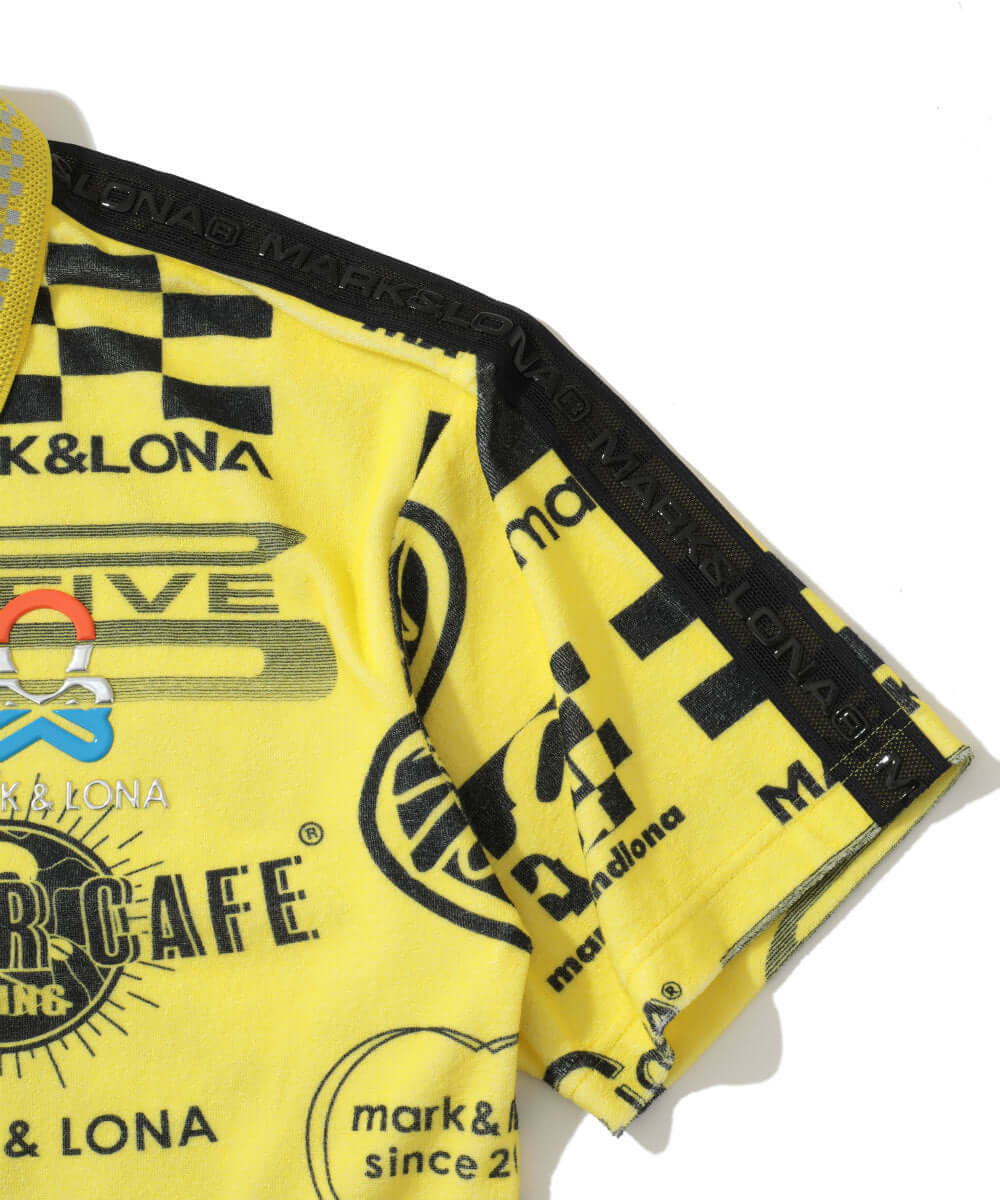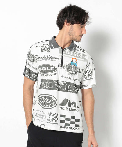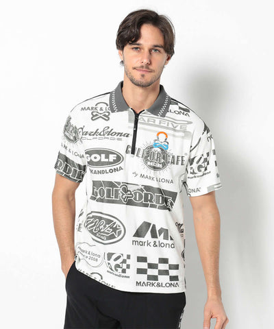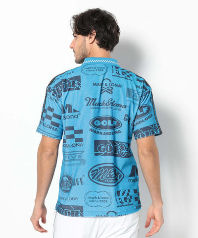 A polo shirt printed with variations of graphic logo motifs. Made of pile material blended with cotton, which has a soft and refreshing texture. A sophisticated style with room around the body and shoulders, and sharp collar and sleeves. A regular fit silhouette that follows the natural lines of the body. An impactful item that symbolizes the theme of this season.