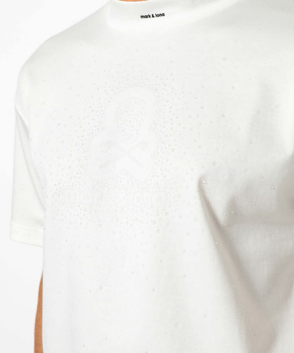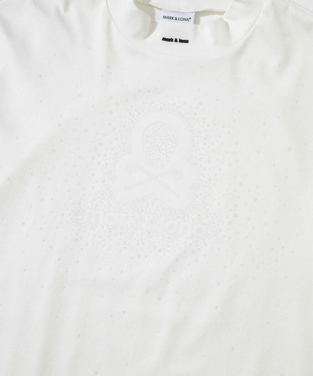 ・The skull and brand logo on the chest, made of crystal stones, add a glamorous accent.