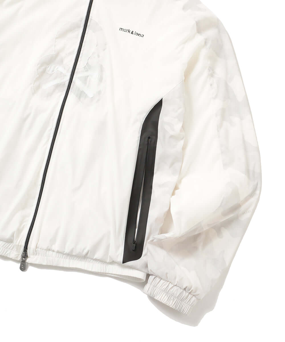 This functional jacket features a camouflage pattern and solid color accents, featuring an iconic blank skull logo on the front. Designed for lightness and freedom of movement, it offers sophisticated style and comfort.
