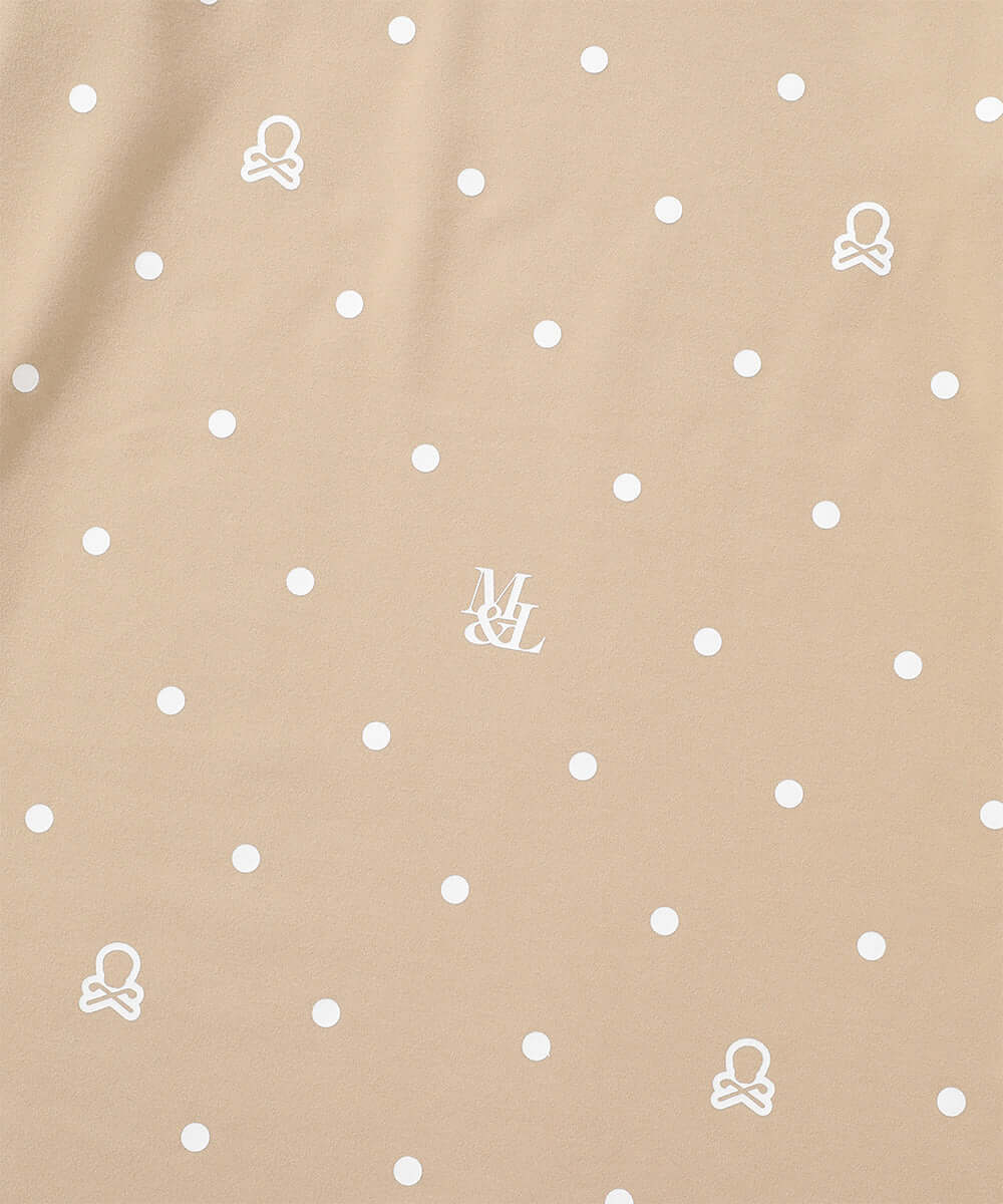 ・Features a two-tone logo and dot pattern.