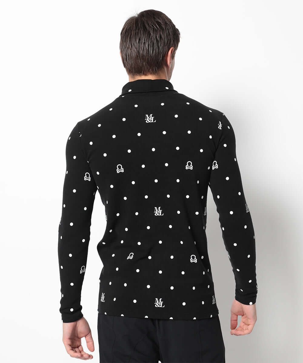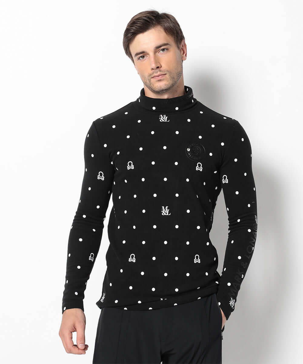 This stylish high-neck, long-sleeved shirt features a dot pattern, perfect for everyday wear and golf. It's a fall/winter staple that combines functionality and style.