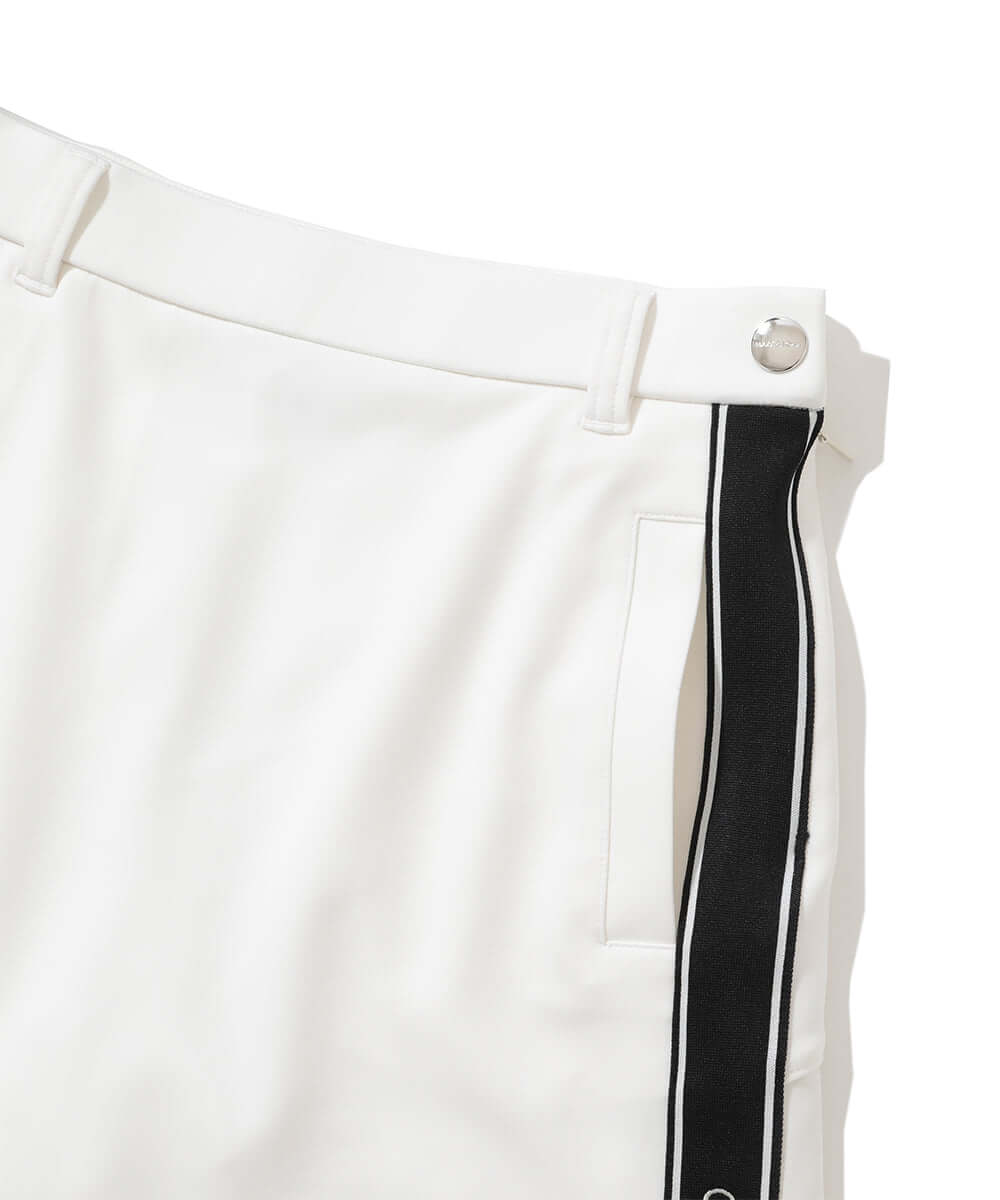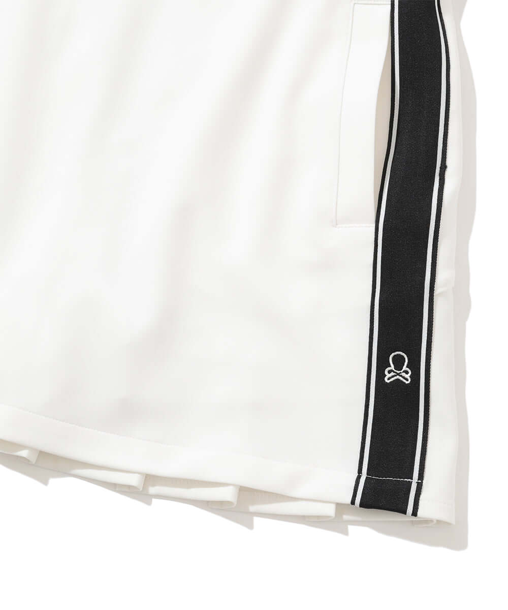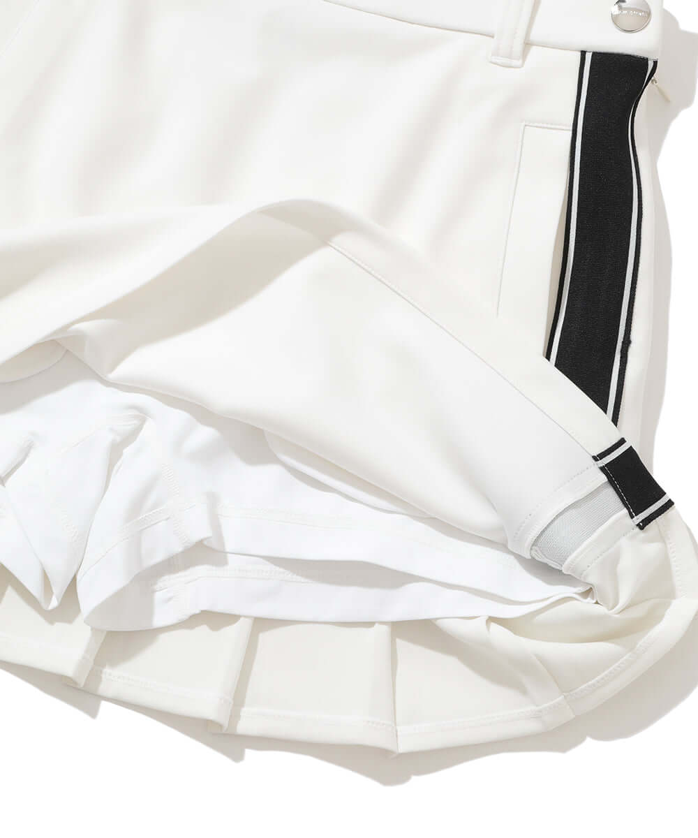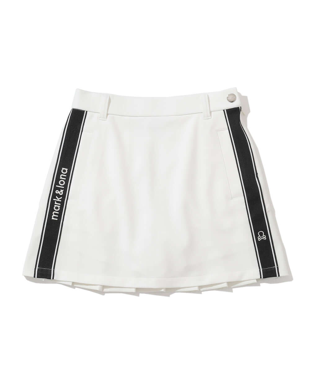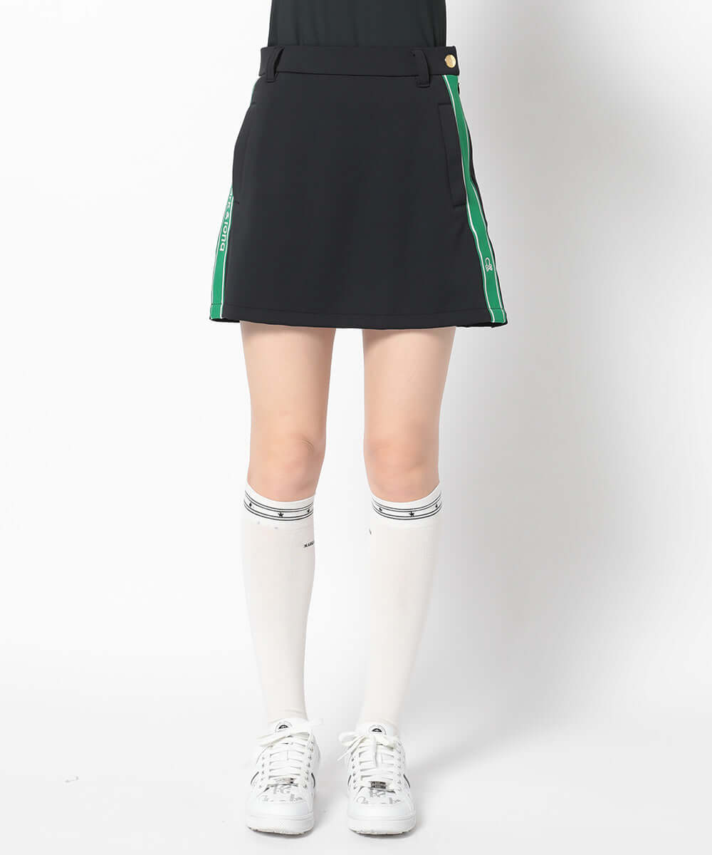 This trapeze skirt features a distinctive color-coordinated stripe on the side, combining a flattering silhouette with functionality.