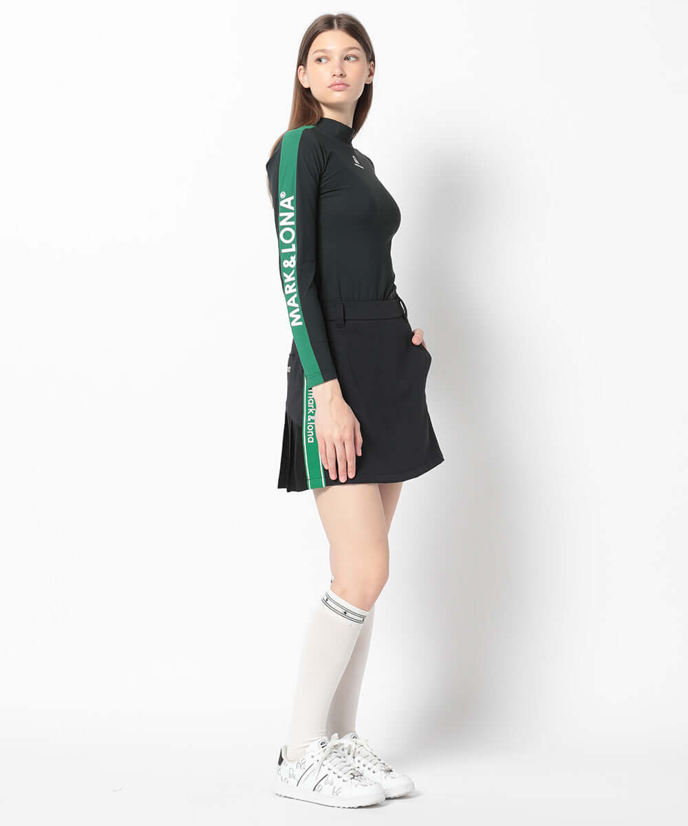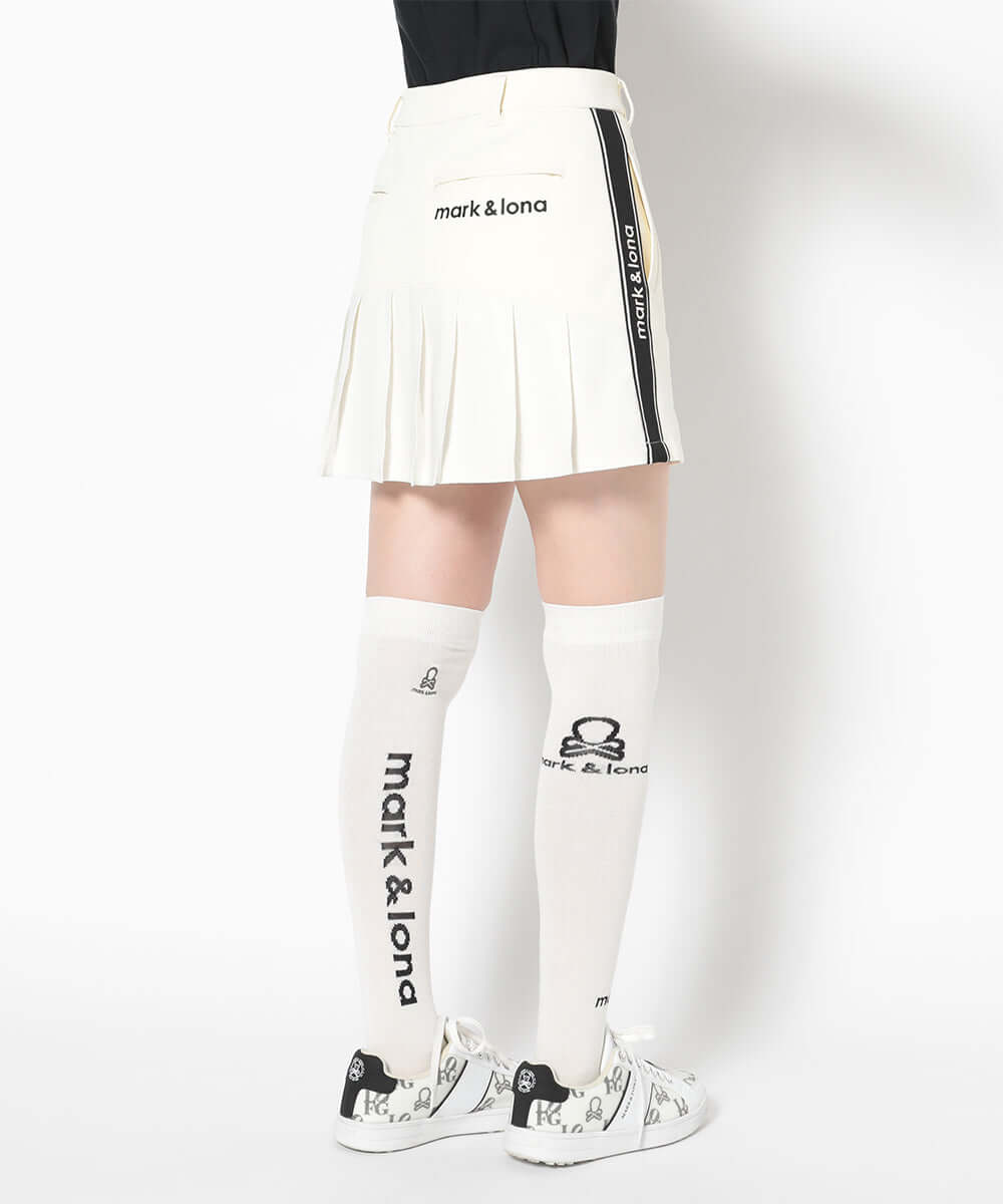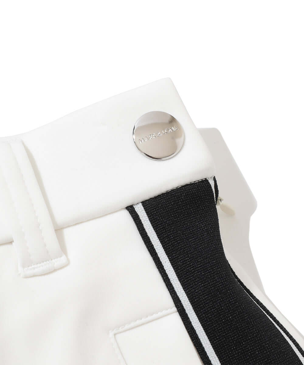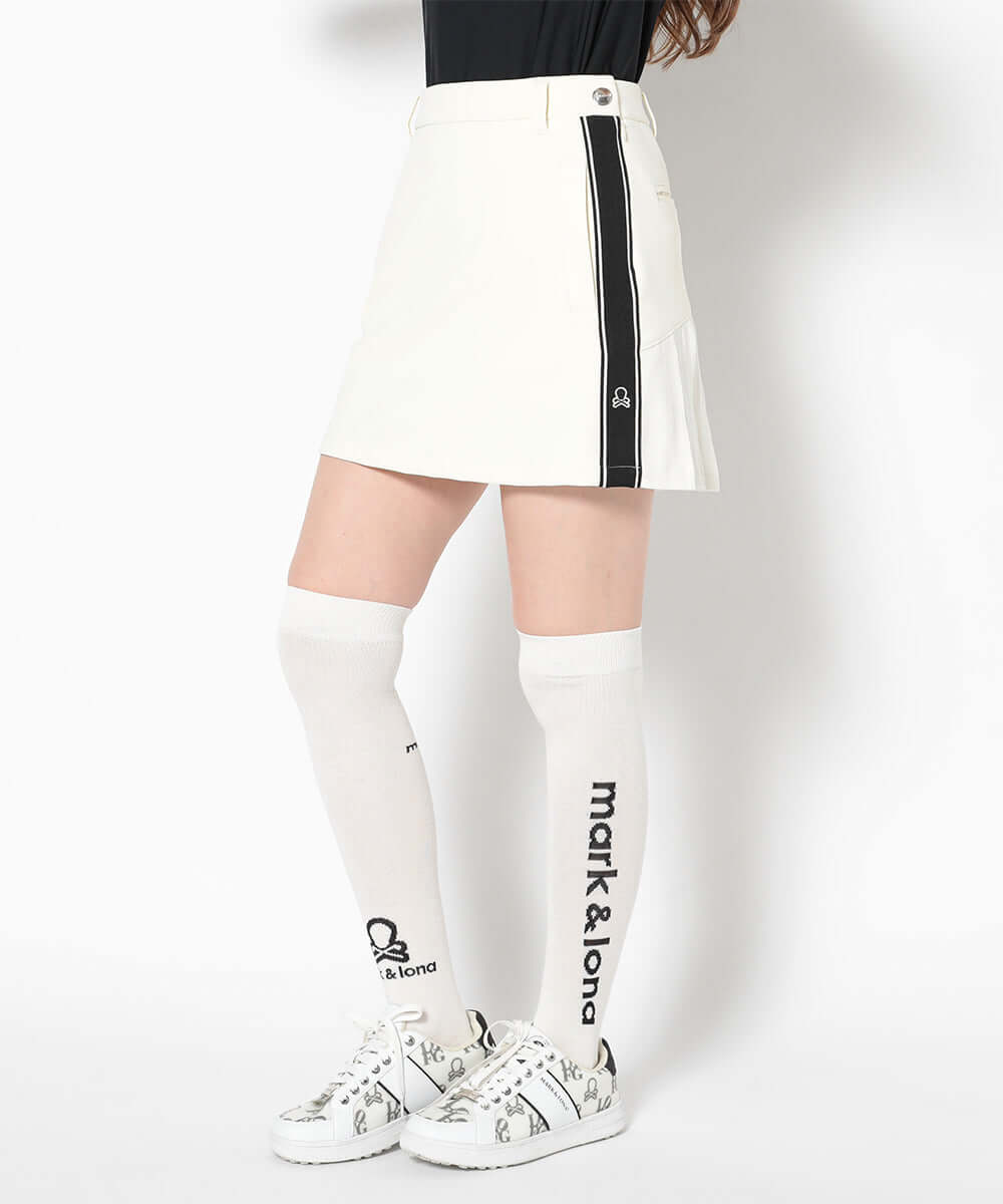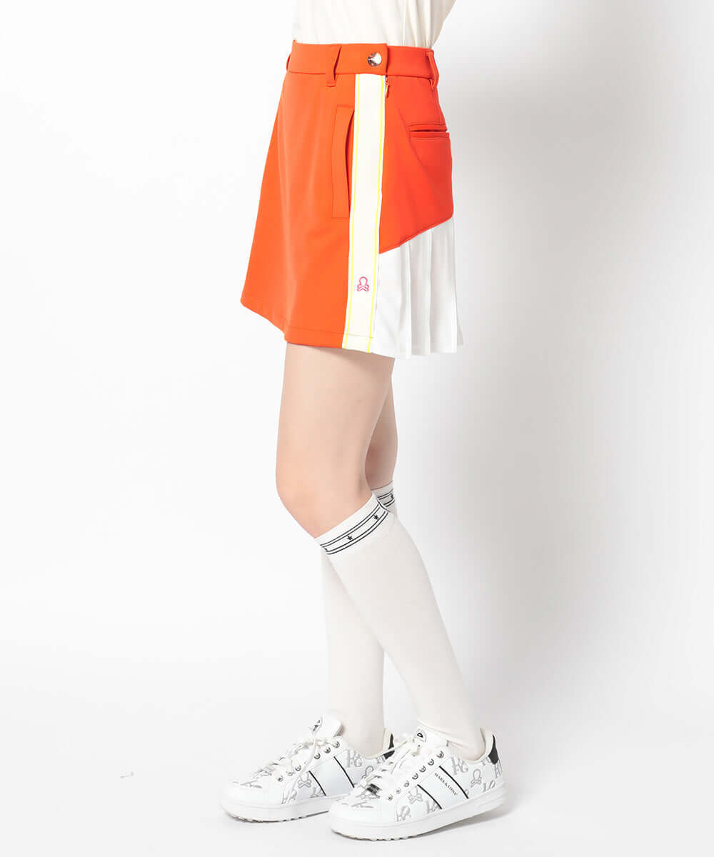 This trapeze skirt features a distinctive color-coordinated stripe on the side, combining a flattering silhouette with functionality.