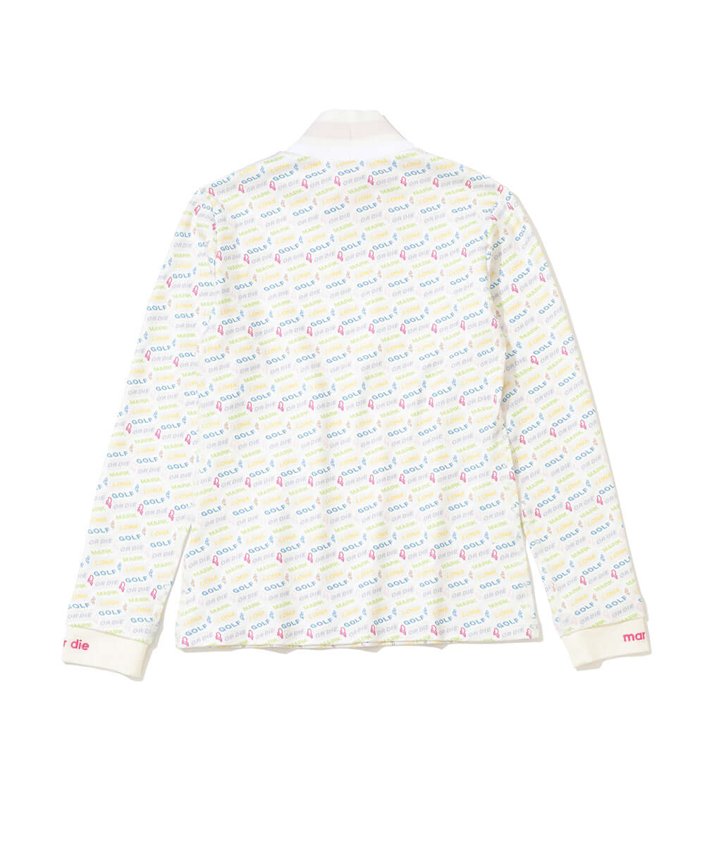 This high-neck, long-sleeved shirt is crafted from brushed microfleece and features a striking geometric pattern with multicolored letter graphics. Its soft feel and high stretch provide comfortable wear and excellent warmth.