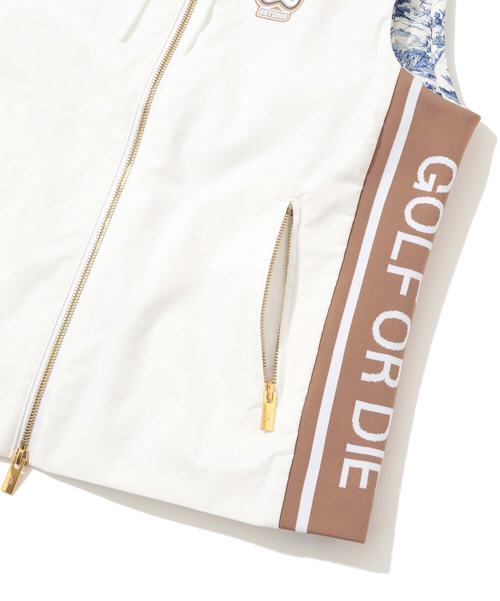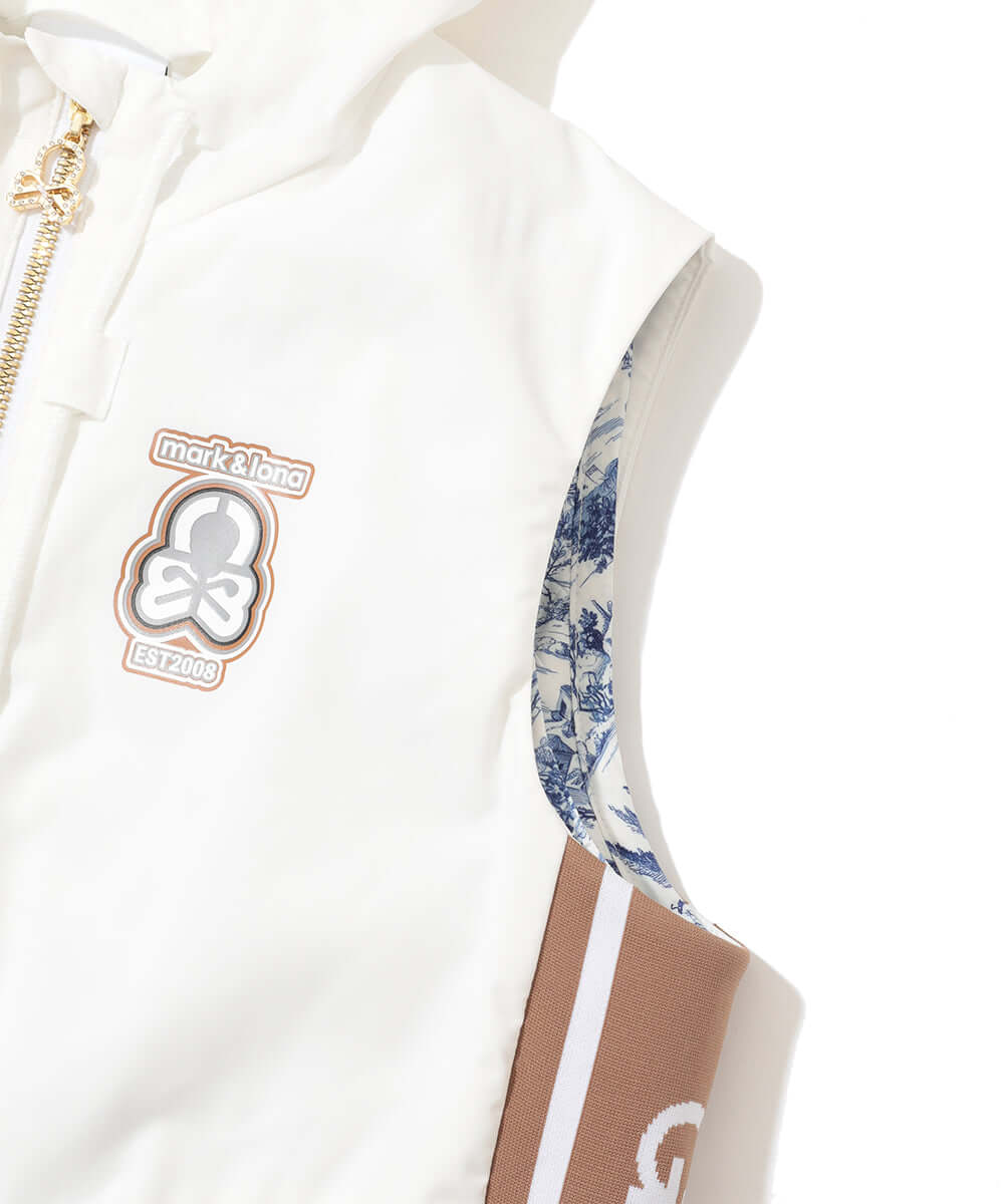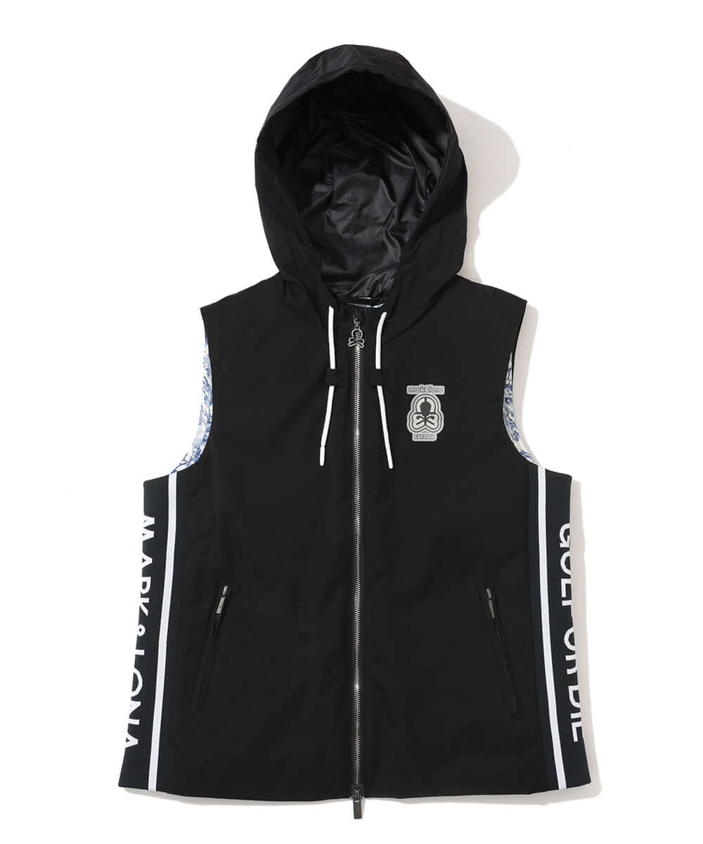 This 3-way hooded vest features an original diamond check pattern, combining functionality and style.