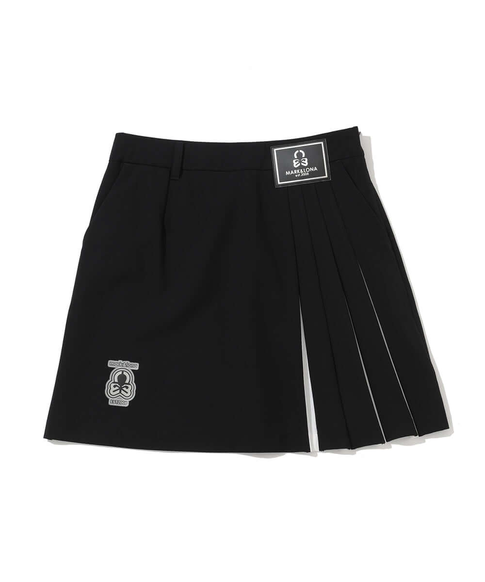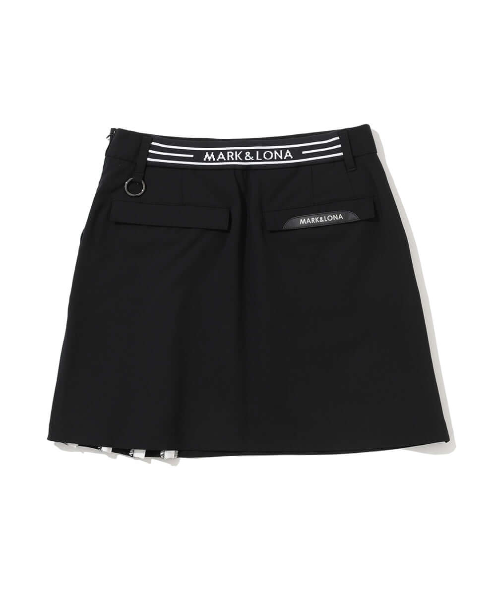 A sophisticated, asymmetrical pleated skirt with an eye-catching, elegant twill fabric and original pattern.