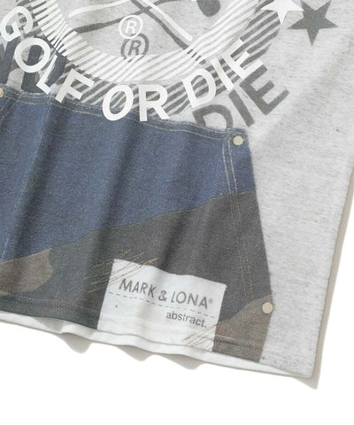 เสื้อยืดพิมพ์ลายรีเมคจาก "Abstract Series" ที่สร้างสรรค์โดยการรื้อผ้ายีนส์วินเทจและเสื้อผ้าทหาร แล้วนำวัสดุต่างชนิดมาผสมผสานอย่างมีศิลปะ เป็นชิ้นพิเศษที่ใช้เส้นด้ายฝ้าย US แบบ open-end ให้ความรู้สึกยุค 80s และถ่ายทอดงานแพตช์เวิร์กอันประณีตของช่างฝีมือผ่านลายพิมพ์