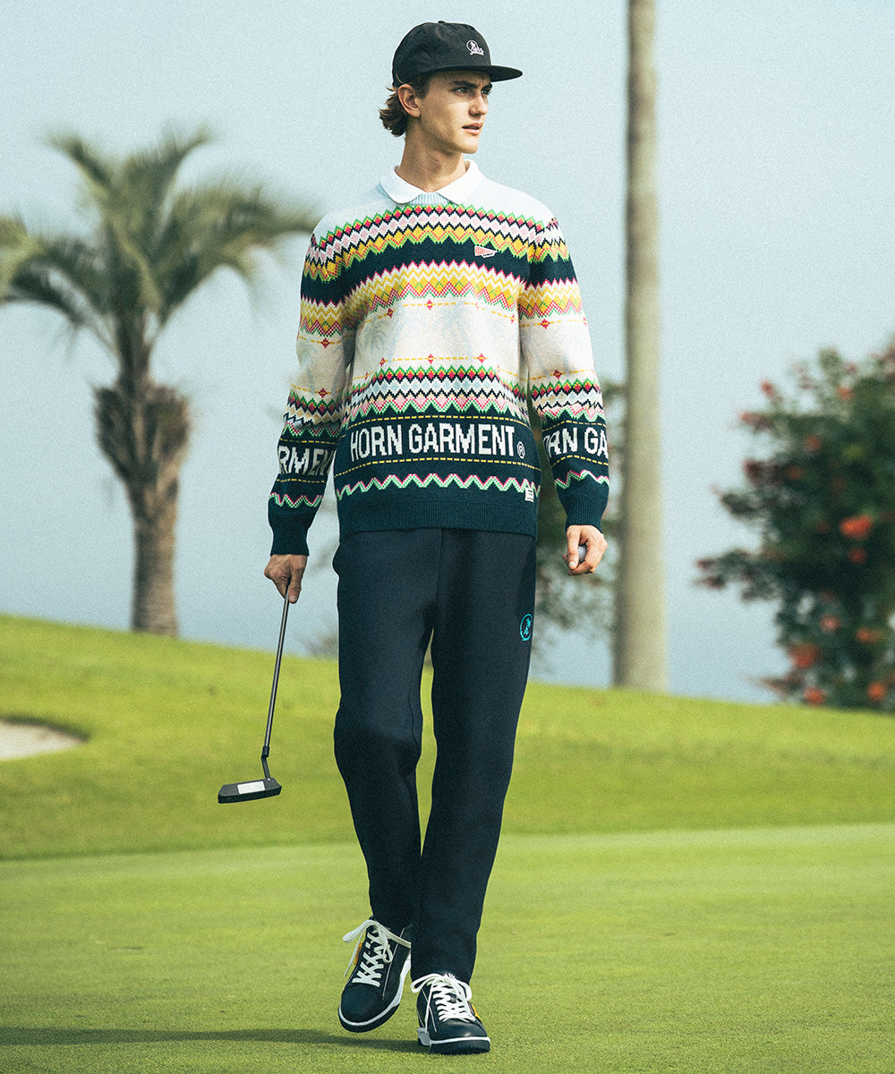 Introducing the Fair Isle jacquard knit, inspired by the California outdoors and highlighted with vibrant Fair Isle patterns and palm tree motifs.