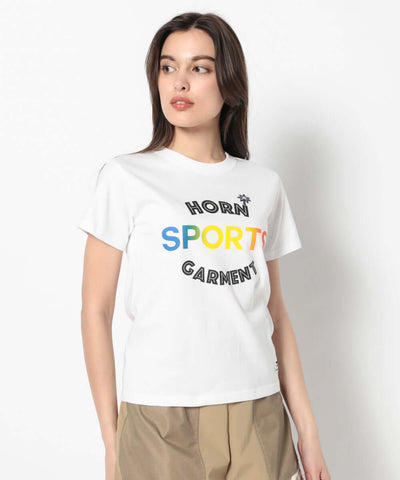 Áo thun thường ngày với logo biểu tượng in ở mặt trước. Thiết kế đặc trưng của HORN GARMENT, với logo phối màu cầu vồng và miếng dán hình cây cọ ở ngực trái tạo điểm nhấn. Chất liệu là 100% cotton chải kỹ đã loại bỏ sợi ngắn, giúp giảm xù lông và mang lại cảm giác mịn màng khi tiếp xúc với da. Áo nhẹ với phom dáng vừa phải, thoải mái khi mặc. Một item đa năng có thể mặc trong nhiều dịp khác nhau, bao gồm sử dụng hàng ngày và các hoạt động thể thao nhẹ.