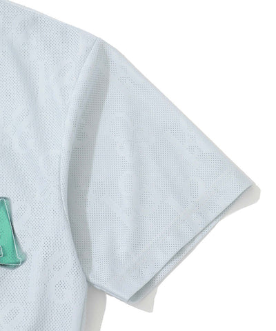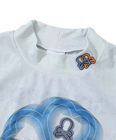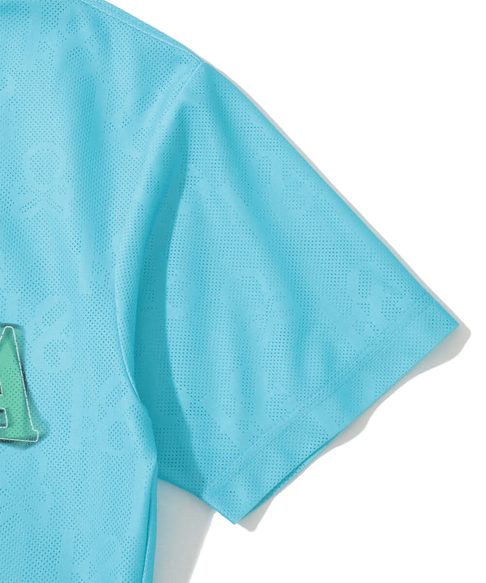Áo thun cổ cao giả làm từ chất liệu jacquard lưới polyester nhẹ và thoáng khí, kết hợp giữa tính năng và thiết kế.